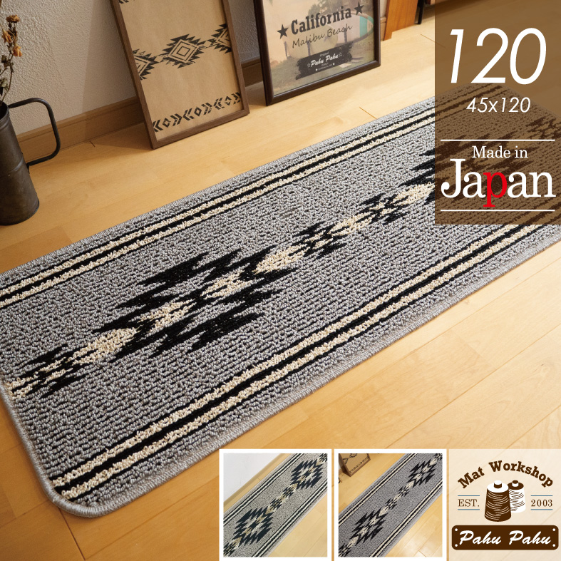 キッチンマット 120 滑り止め おしゃれ かっこいい ネイティブ オルテガLA 45x120