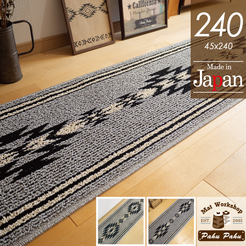 キッチンマット 240 滑り止め おしゃれ かっこいい ネイティブ オルテガLA 45x240
