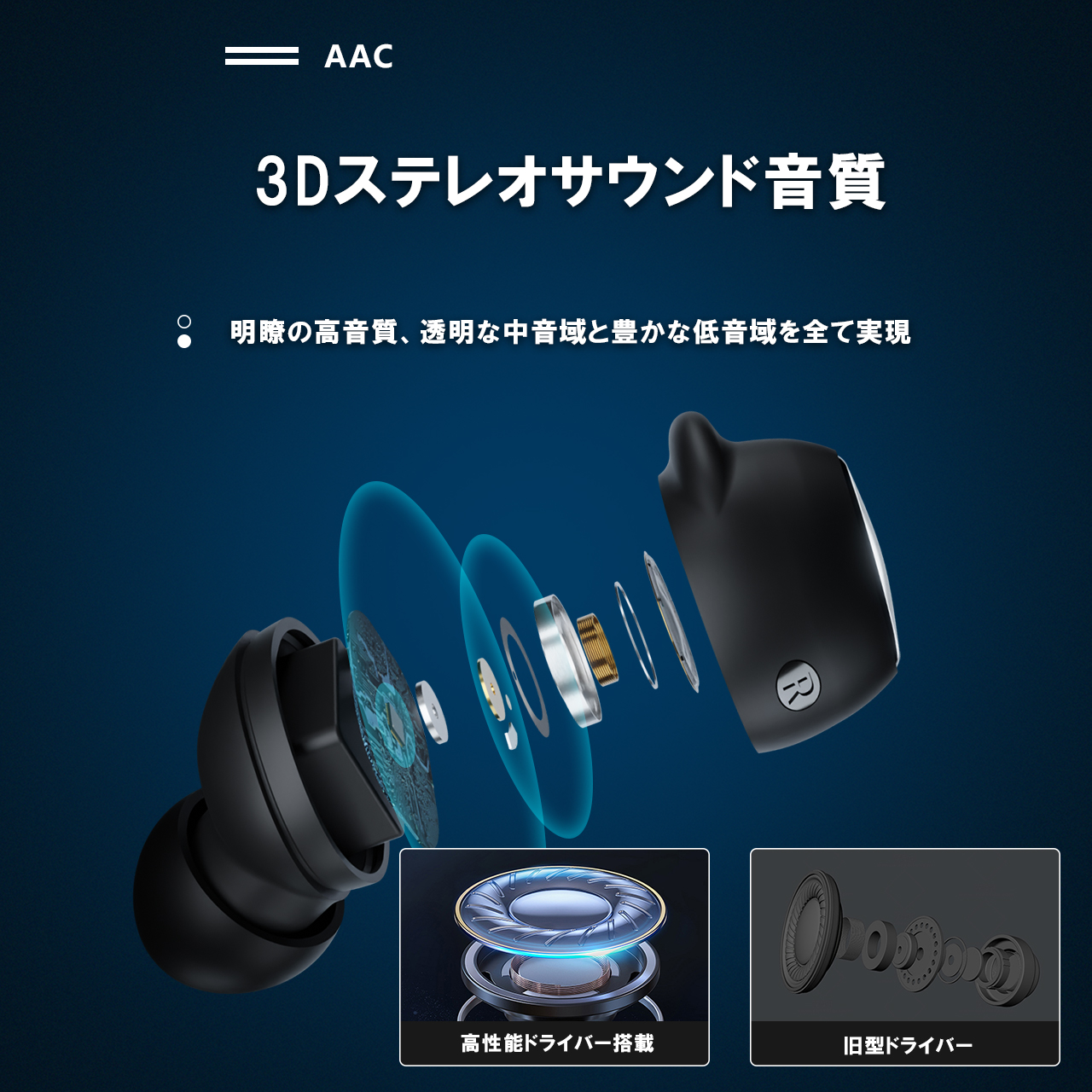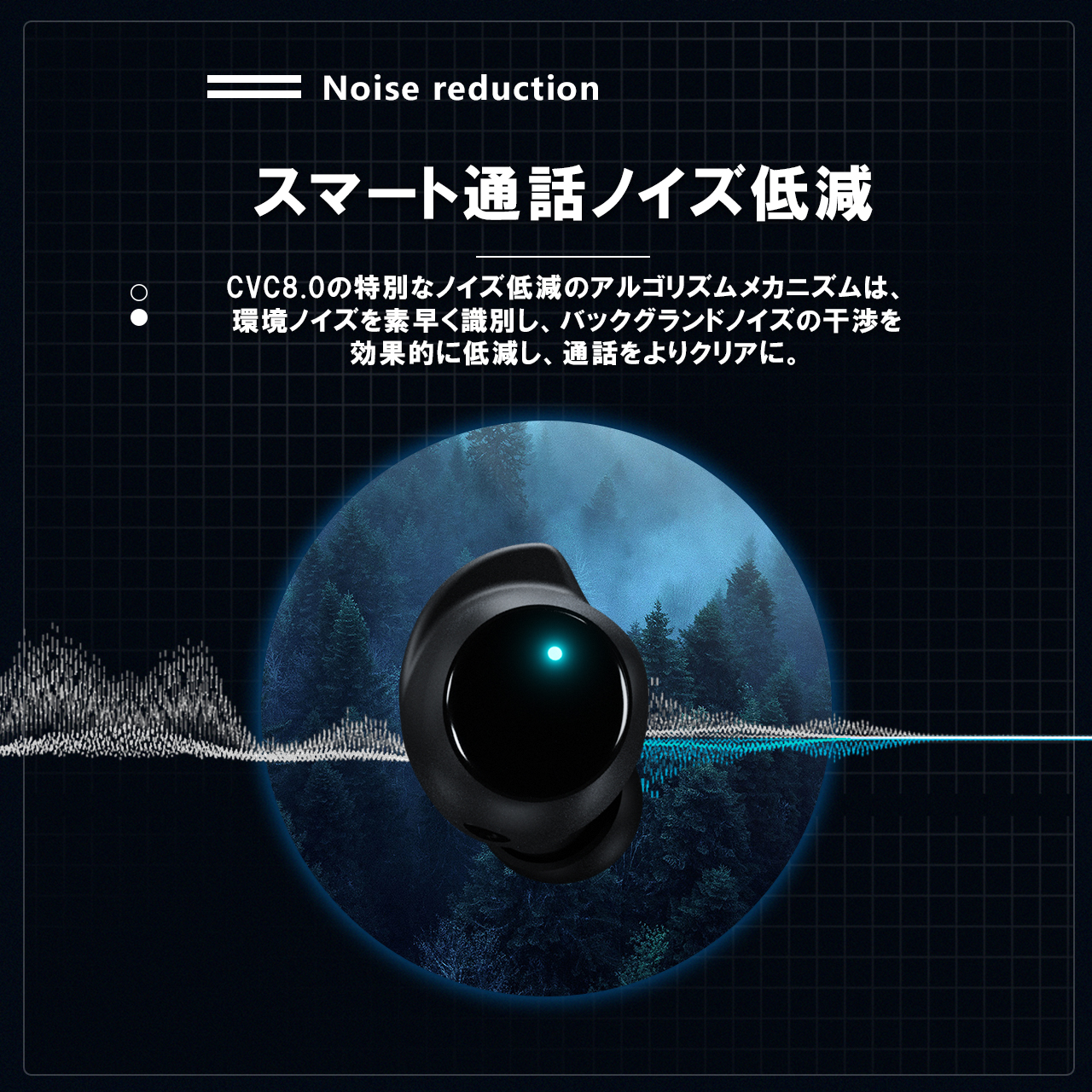 【デュアルマイク】デュアルマイクに加え、ENCノイズキャンセリングにより、自然豊かな音を感じられる音域、立体的、ハイクオリティのサウンドを楽しめる。