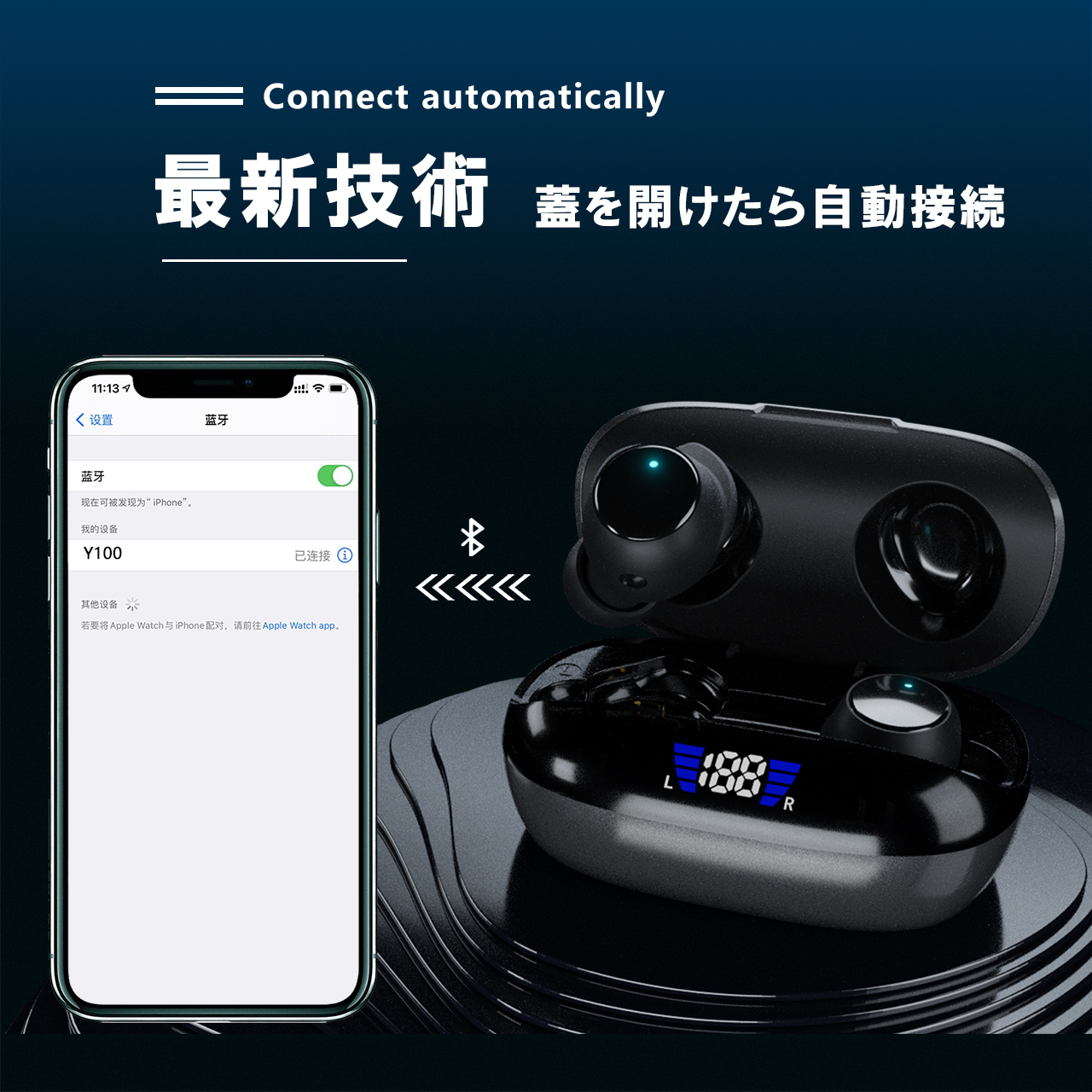 【自動ペアリング】新世代自動ペアリング。イヤホンを取り出さずに蓋を開けるだけ。