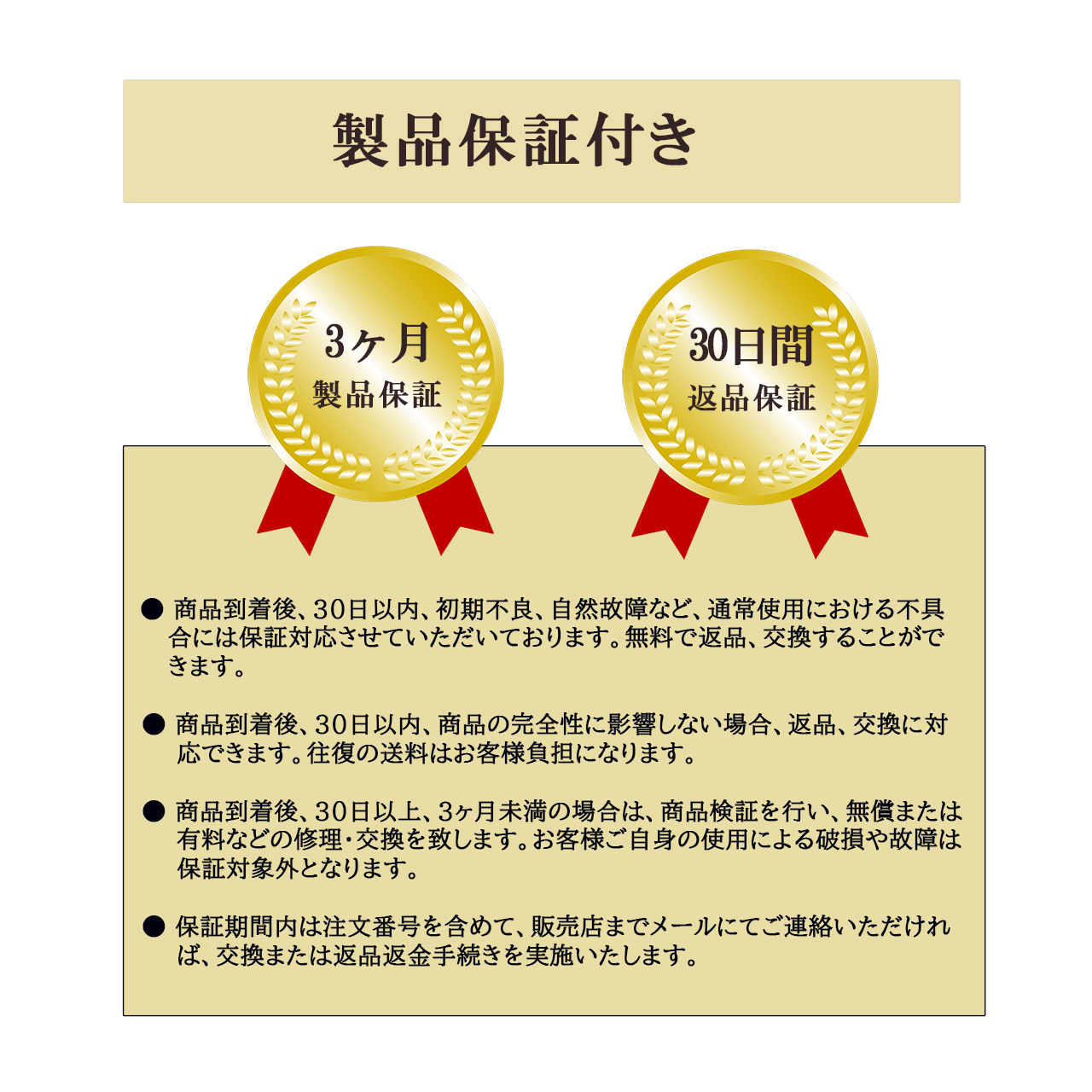 【品質保証】3ヶ月保証(※注文番号が保証書の代わりとなります)