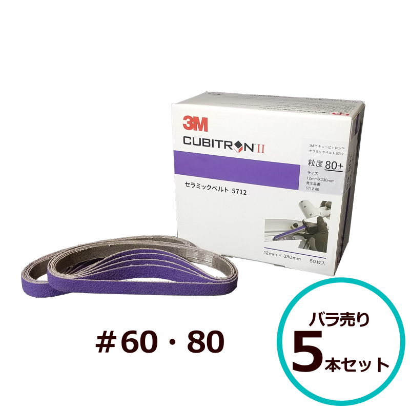 3M キュービトロンII セラミックベルト 5712 #60 #80 12mm×330mm バラ売り 5本セット スリーエム 研磨 鈑金