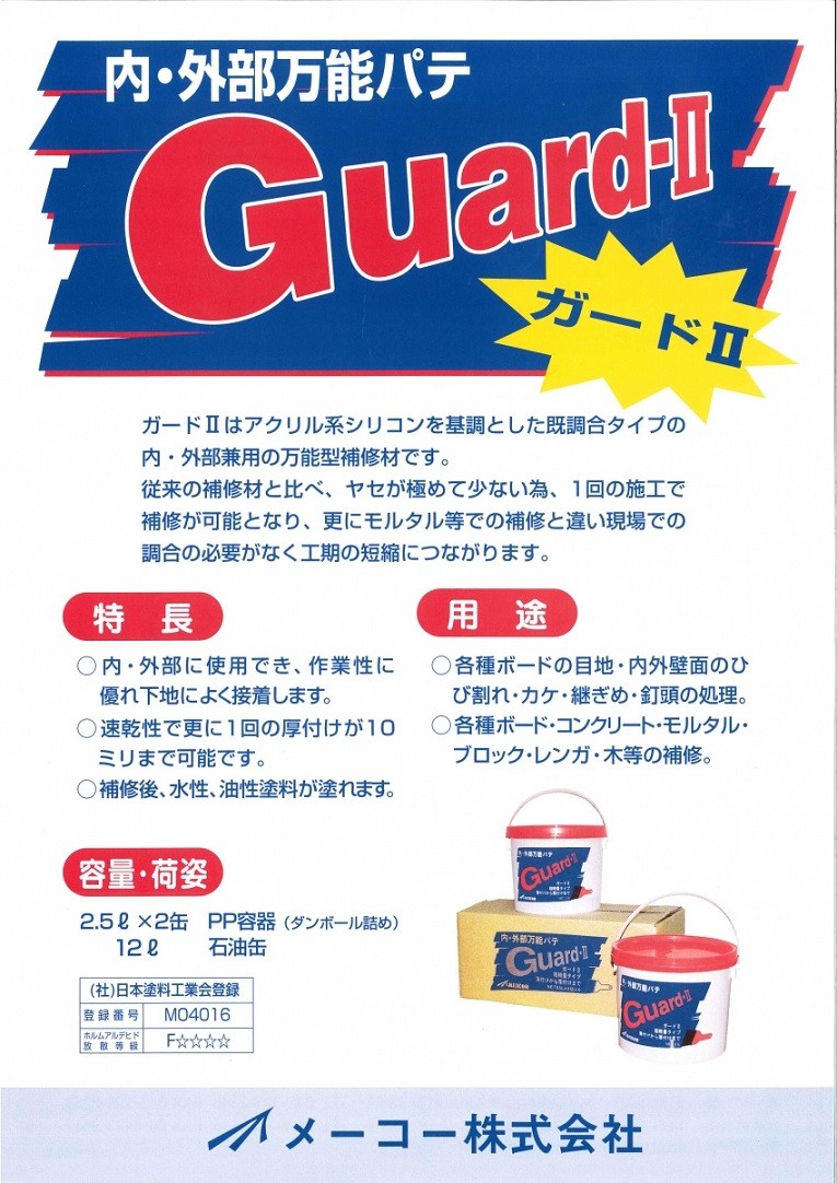 ガードIIはアクリル系シリコンを基調とした既調合タイプの内・外部兼用の万能型補修材です。
