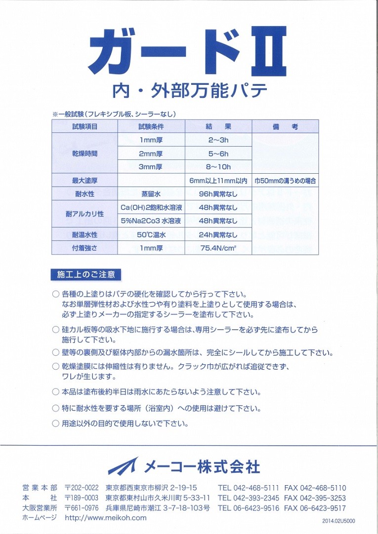 メーコー Guard-II ガードII 2.5L 内・外部万能パテ 1缶