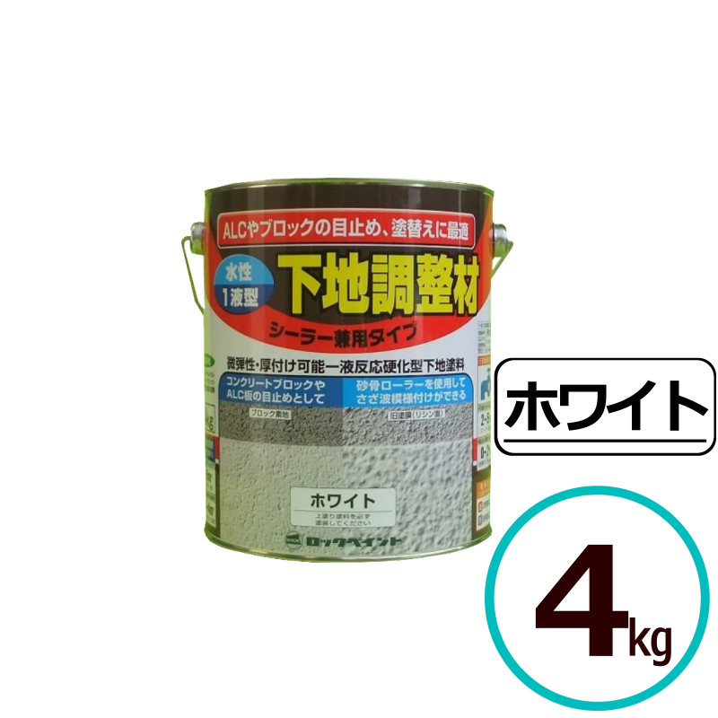 ロックペイント 下地調整材 4kg 微弾性 シーラー フィーラー パターン 砂骨ローラー 厚付け 水性 ホワイト
