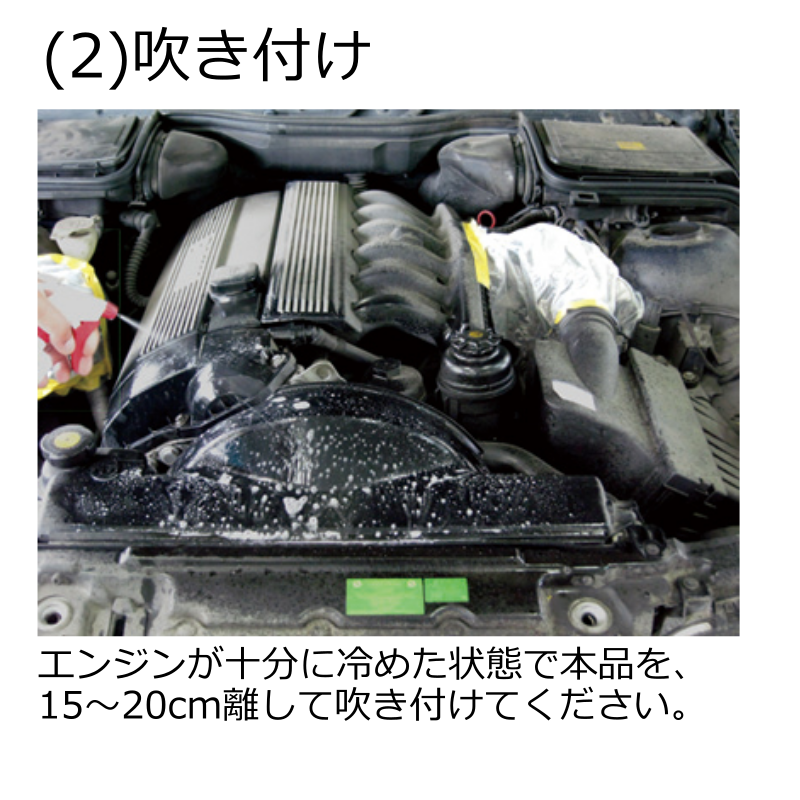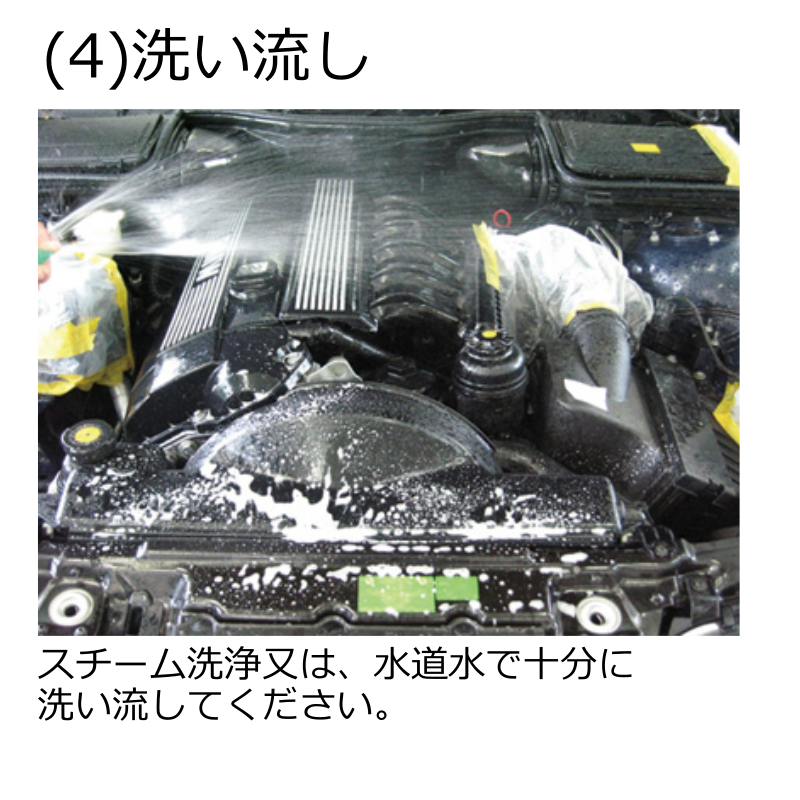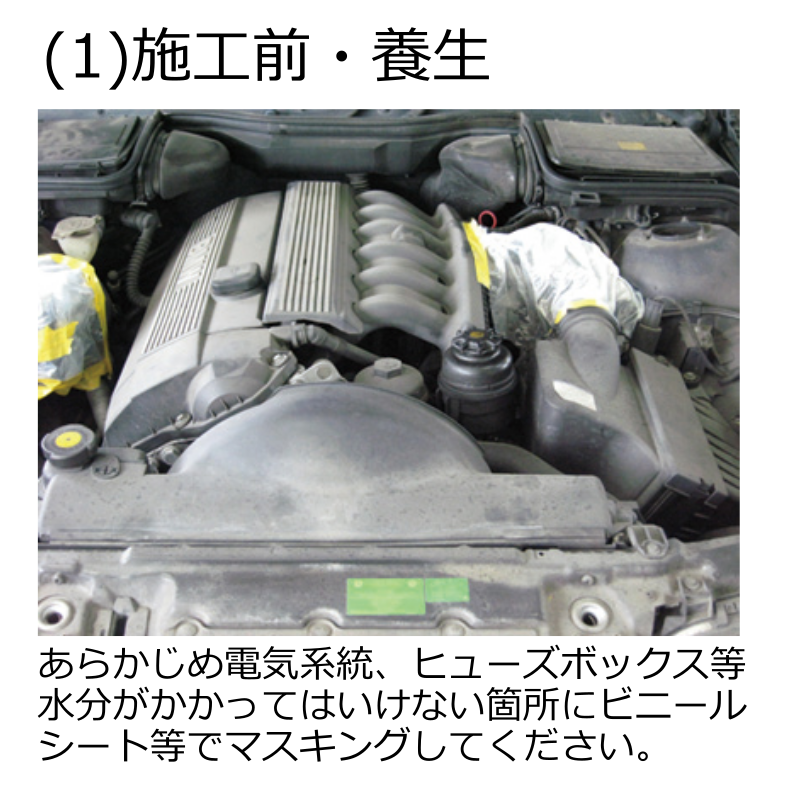 ※電気系統、ヒューズボックスなどは本品や水がかからないように必ず養生して下さい。