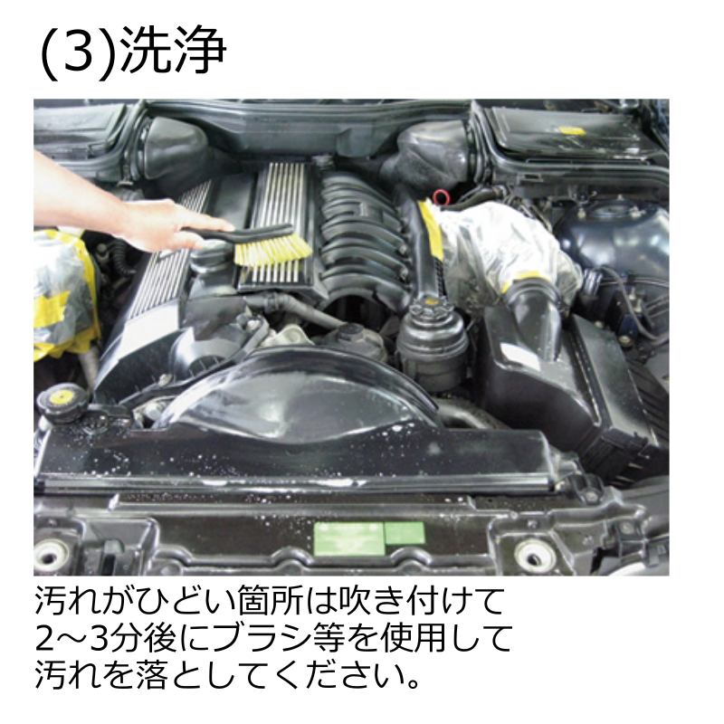 エンジンルーム内の頑固な汚れを簡単に落とせる。