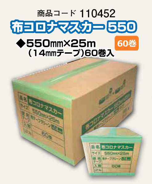 布マスカー 550×25m巻 60巻入り【14mmテープ巾】ケース コロナマスカー 塗装養生 110452