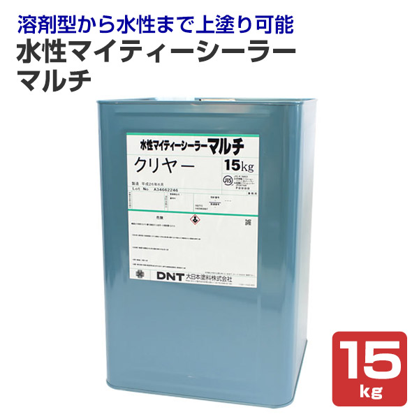 大日本塗料の水性マイティーシーラーマルチは、新設から塗替えまで、弾性塗材から硬質塗材まで、上塗りは溶剤型から水性まで「マルチ」な高性能を持つカチオン型水性シーラーです。