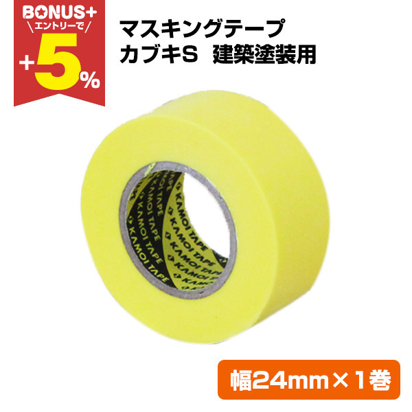 【BONUS+5%】 マスキングテープ カブキS 建築塗装用 24mm x 1巻 (カモイ/KAMOI/養生テープ/紙粘着テープ)
