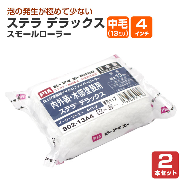 PIAのステラデラックスは、マイクロファイバー繊維を使用し、吐き出しが良く、低粘度塗料でも液だれしない優れたホールド性と塗料の飛散、泡の発生が極めて少ない性能を持った内外装・木部塗装用のスモールローラーです。スモールローラーハンドルに差し込んで使用します。