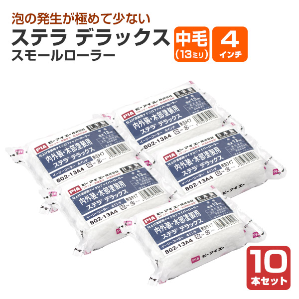 ステラ デラックス スモールローラー 中毛(13ミリ) 4インチ 10本セット(158836 塗装用具 802-13A4-24 PIA ローラー)