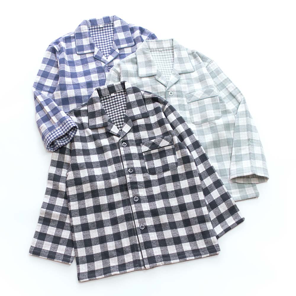 表側も内側も細かな起毛がある生地のため、保温性があり暖かいパジャマです。