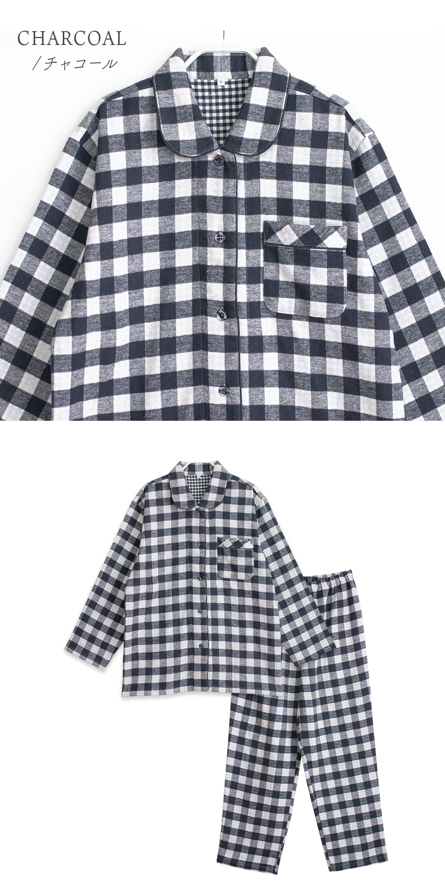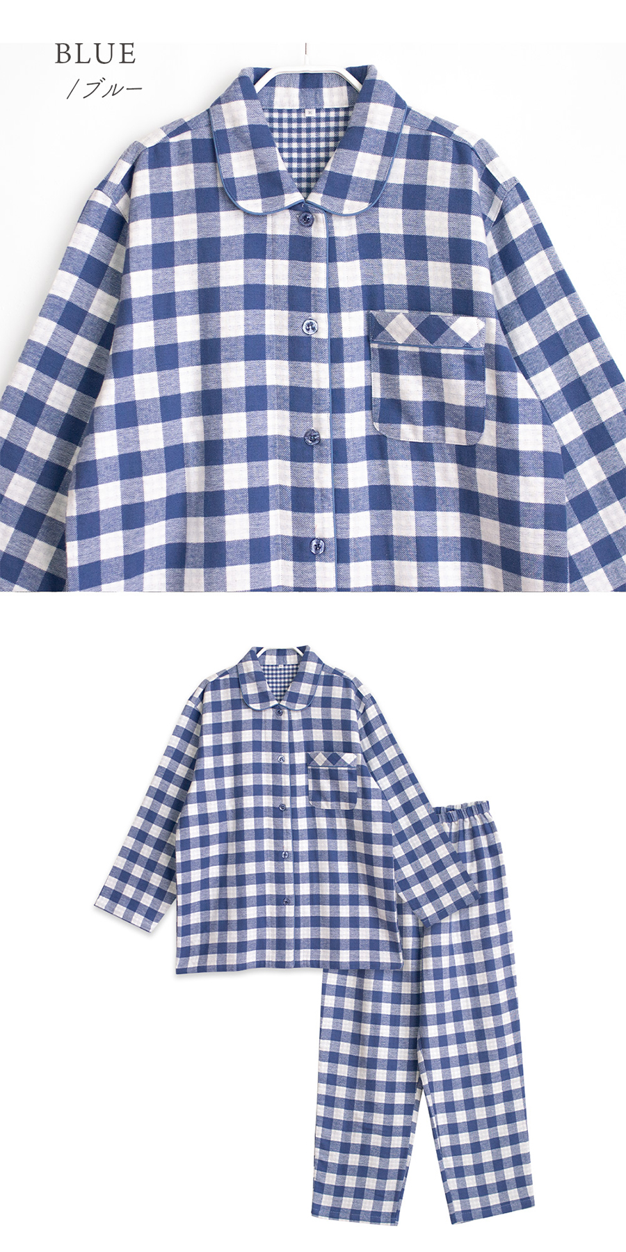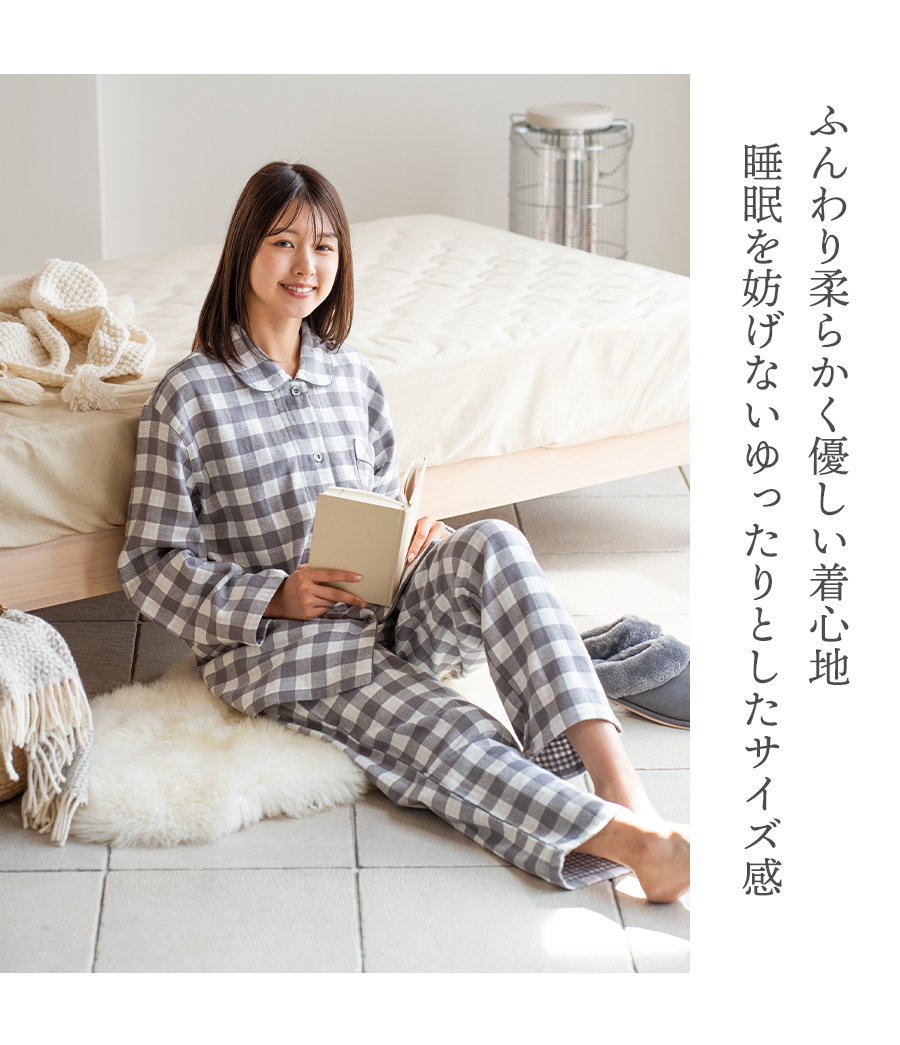パジャマ レディース 綿100% 長袖 冬 柔らかい2枚仕立て 厚手 暖かい ダブルガーゼ 起毛 前開き ボタン シャツ ブロックチェック柄 おそろい 母の日 敬老の日