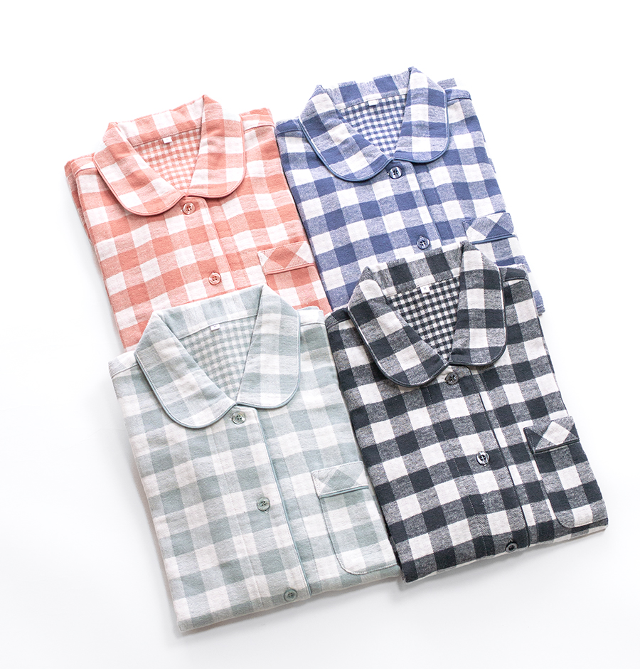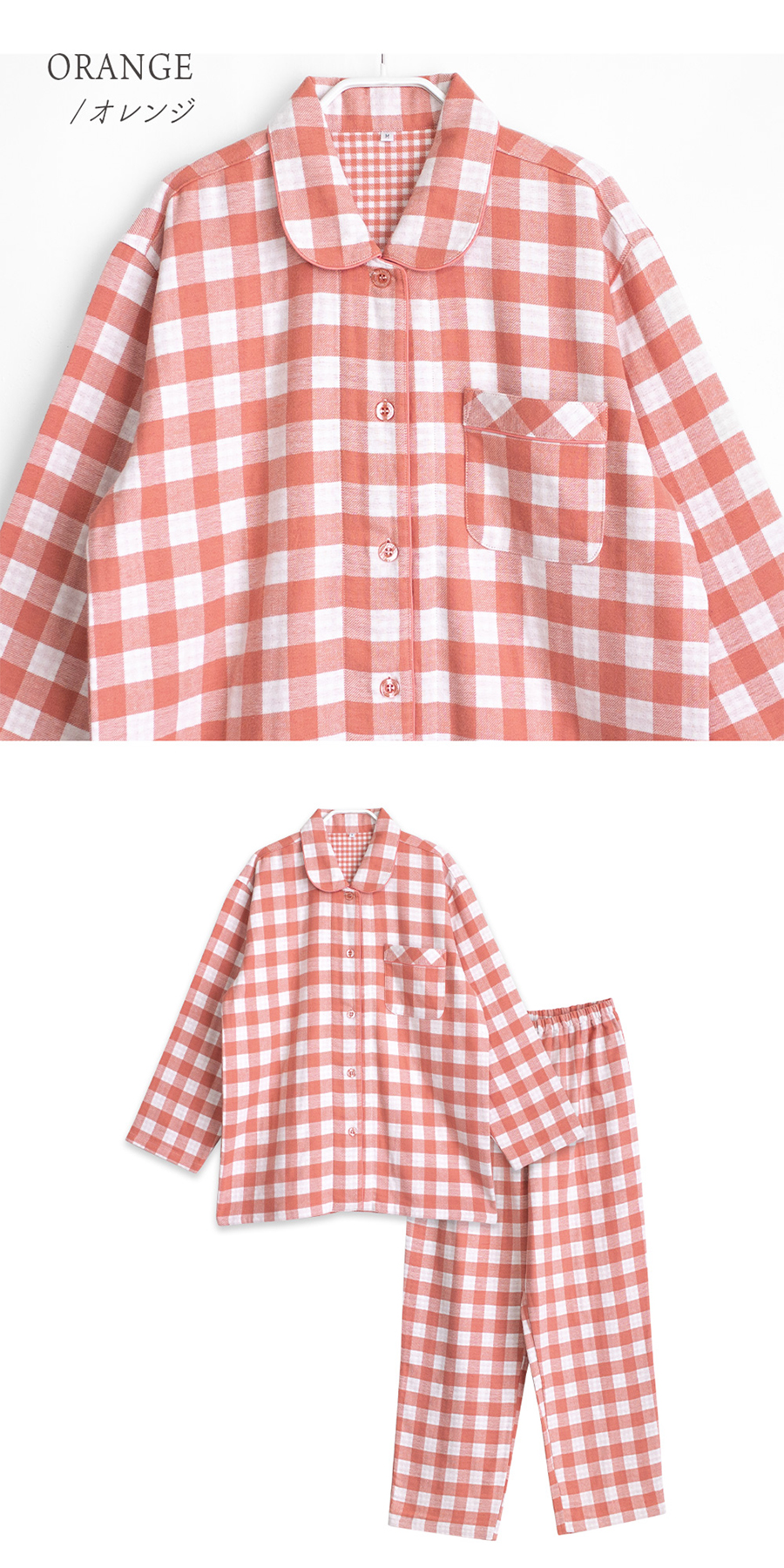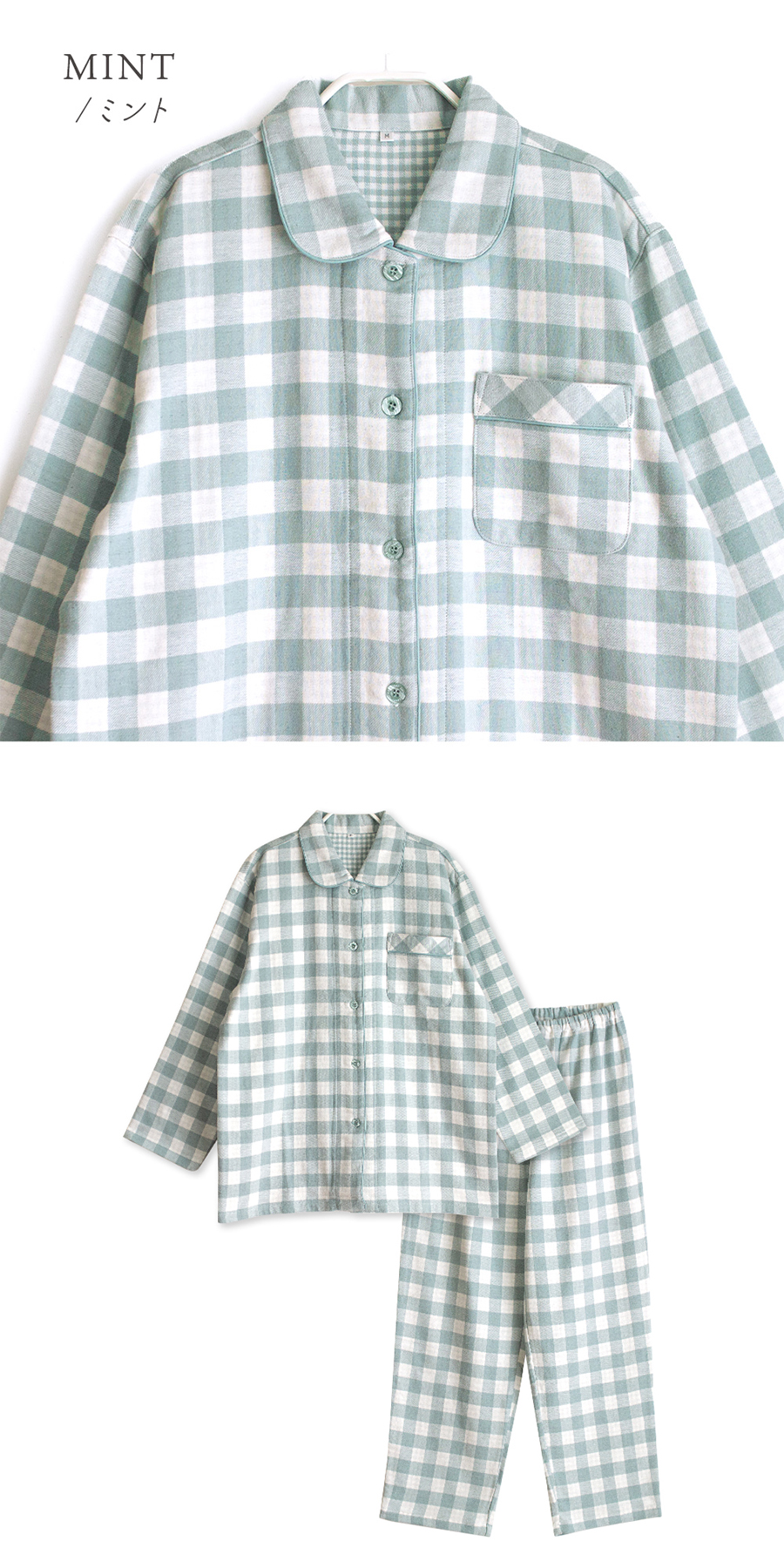 パジャマ レディース 綿100% 長袖 冬 柔らかい2枚仕立て 厚手 暖かい ダブルガーゼ 起毛 前開き ボタン シャツ ブロックチェック柄 おそろい 母の日 敬老の日