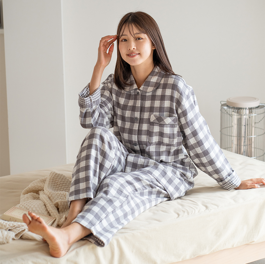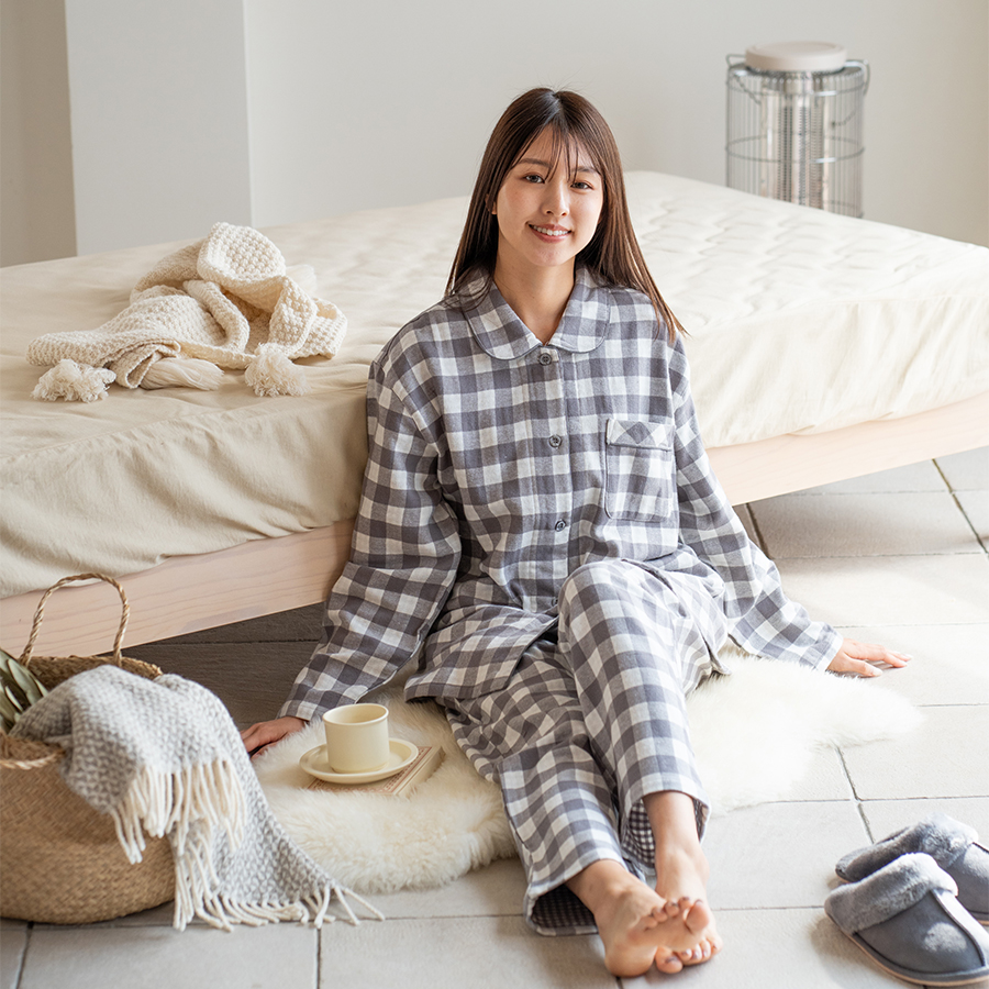 表側も内側も細かな起毛がある生地のため、保温性があり暖かいパジャマです。