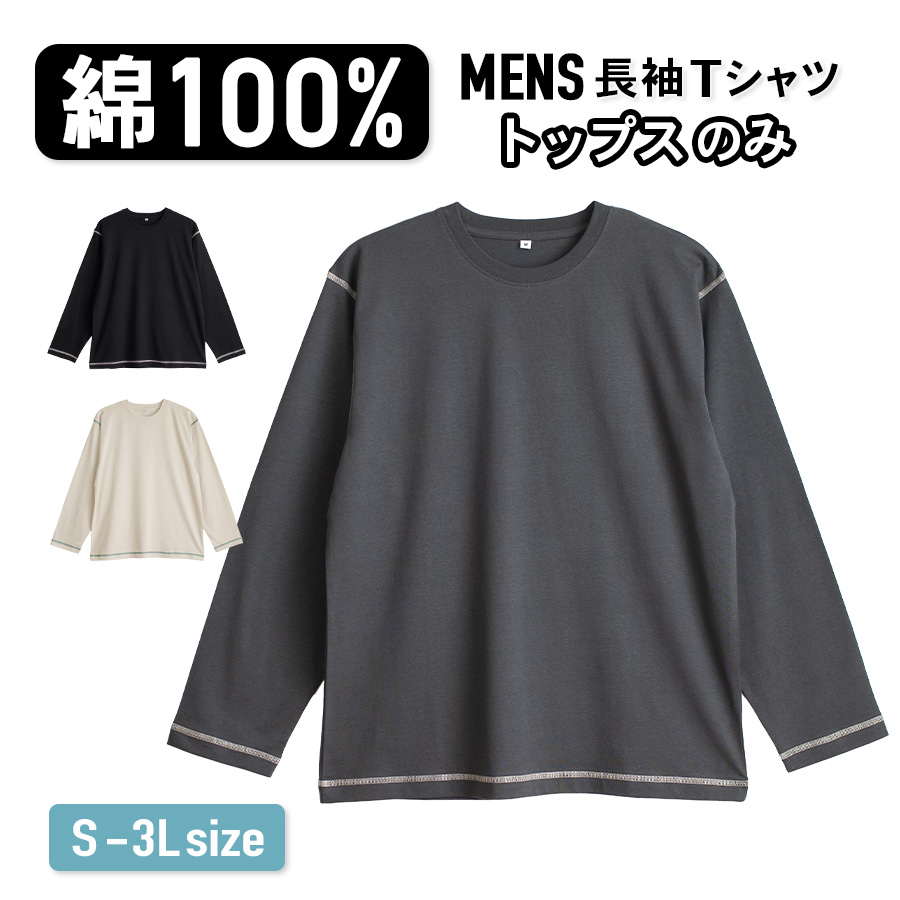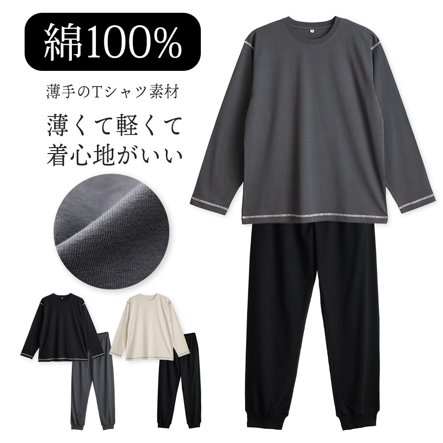 パジャマ トップスのみ メンズ 綿100% 長袖 春 夏 初秋 柔らかく軽い薄手の快適Tシャツ メール便なら送料無料