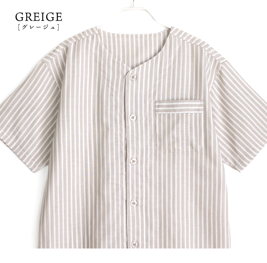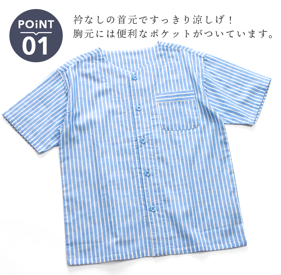 ■トップス仕様:半袖/丸首シャツ/前開き/胸ポケット