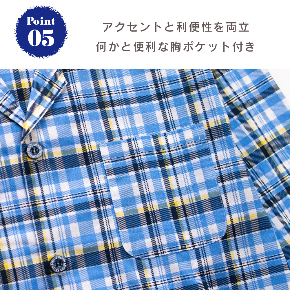 爽やかで明るいチェックが素敵なチェック柄のパジャマです。