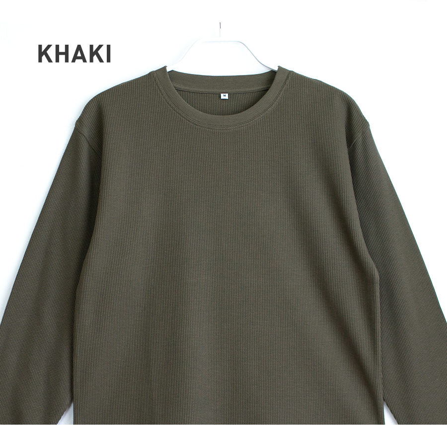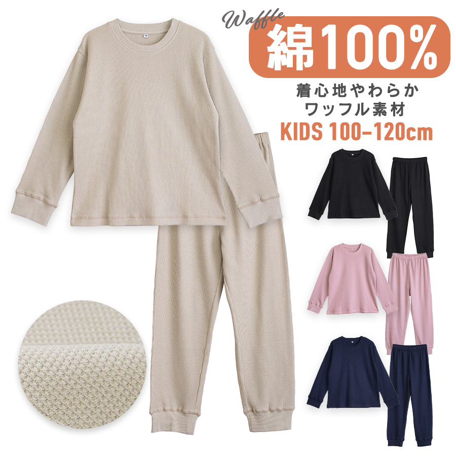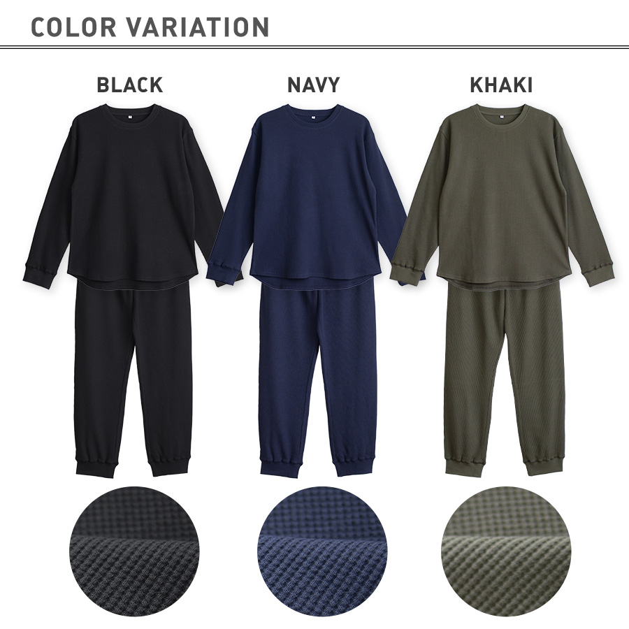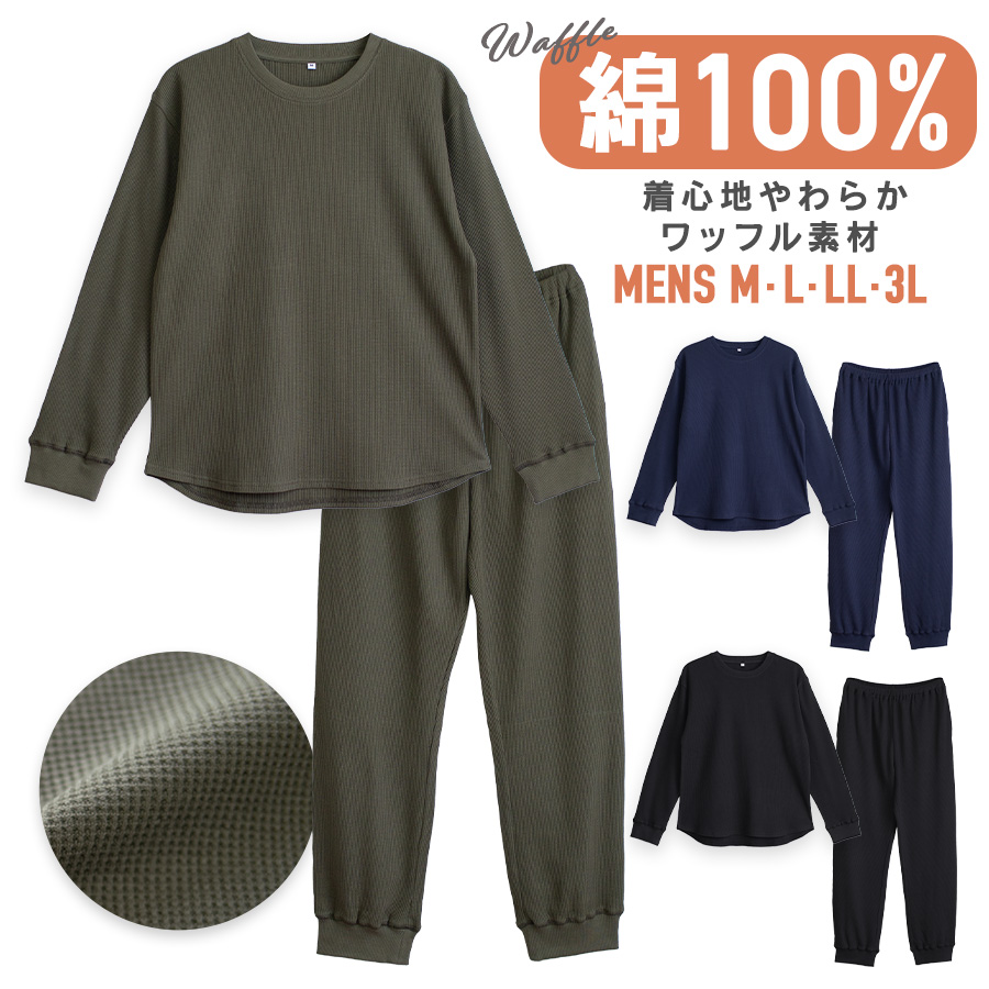 パジャマ メンズ 綿100% ワッフル 長袖 春 秋 カットソー リブ仕様 無地 ハニカム サーマル 親子 おそろい リンクコーデ ギフト プレゼント 父の日