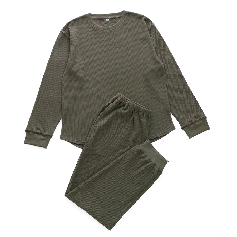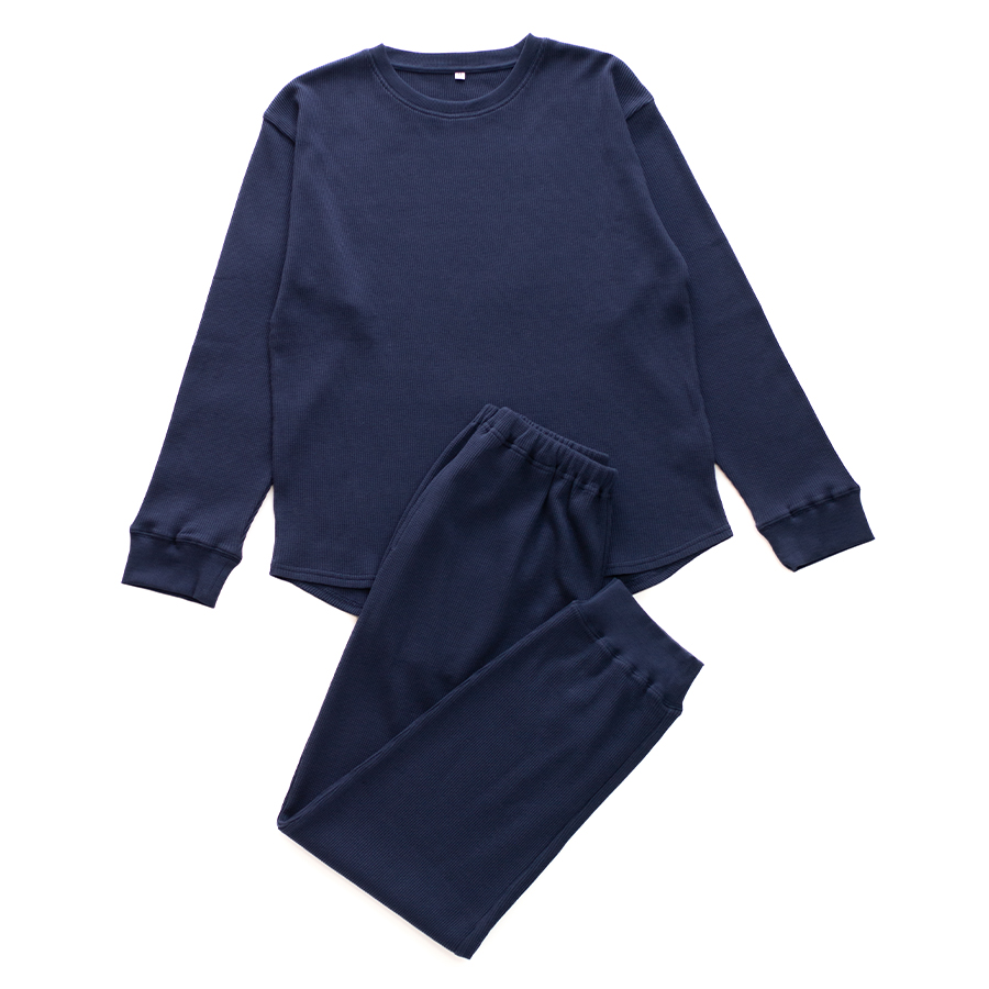 着心地のやわらかな綿100%ワッフル生地でできた、柔軟性と伸縮性に優れたルームウェア・パジャマです。