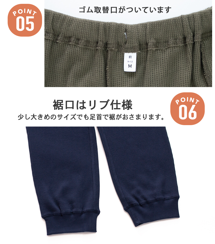 ●パンツ仕様 :長パンツ/裾口リブ/ウエスト総ゴム/ゴム取替口