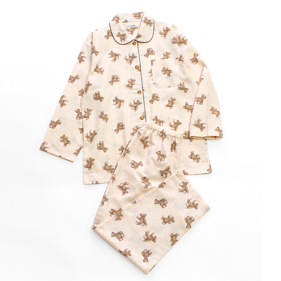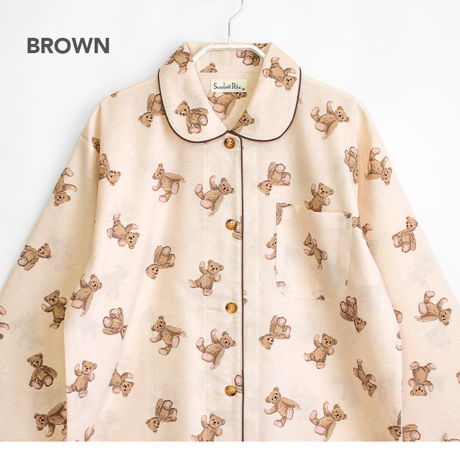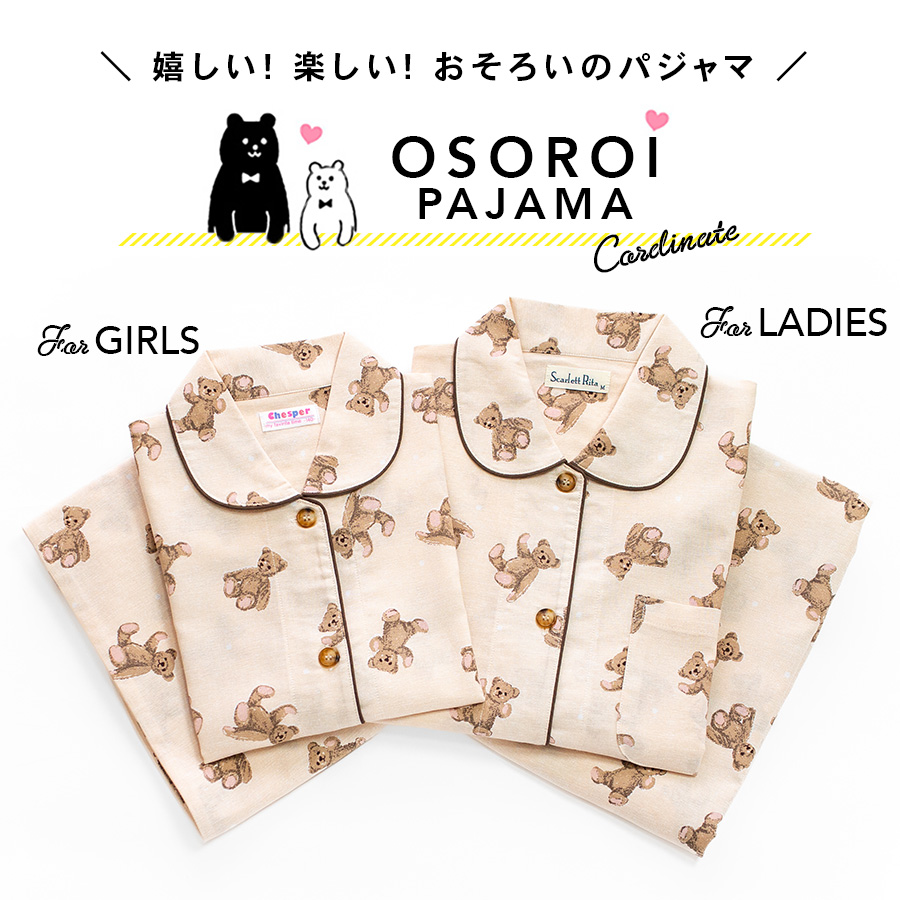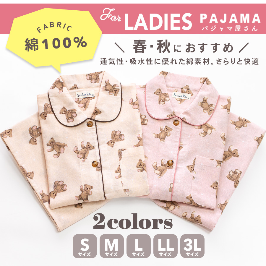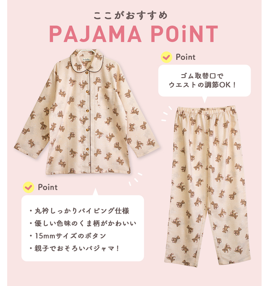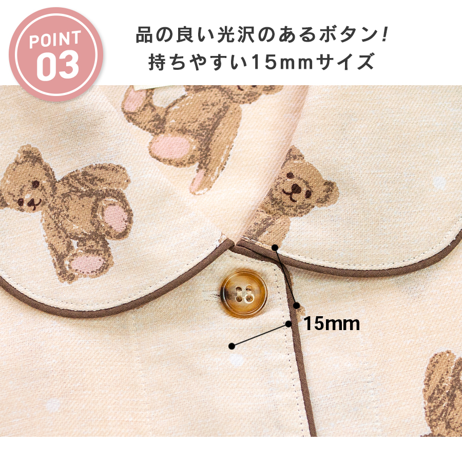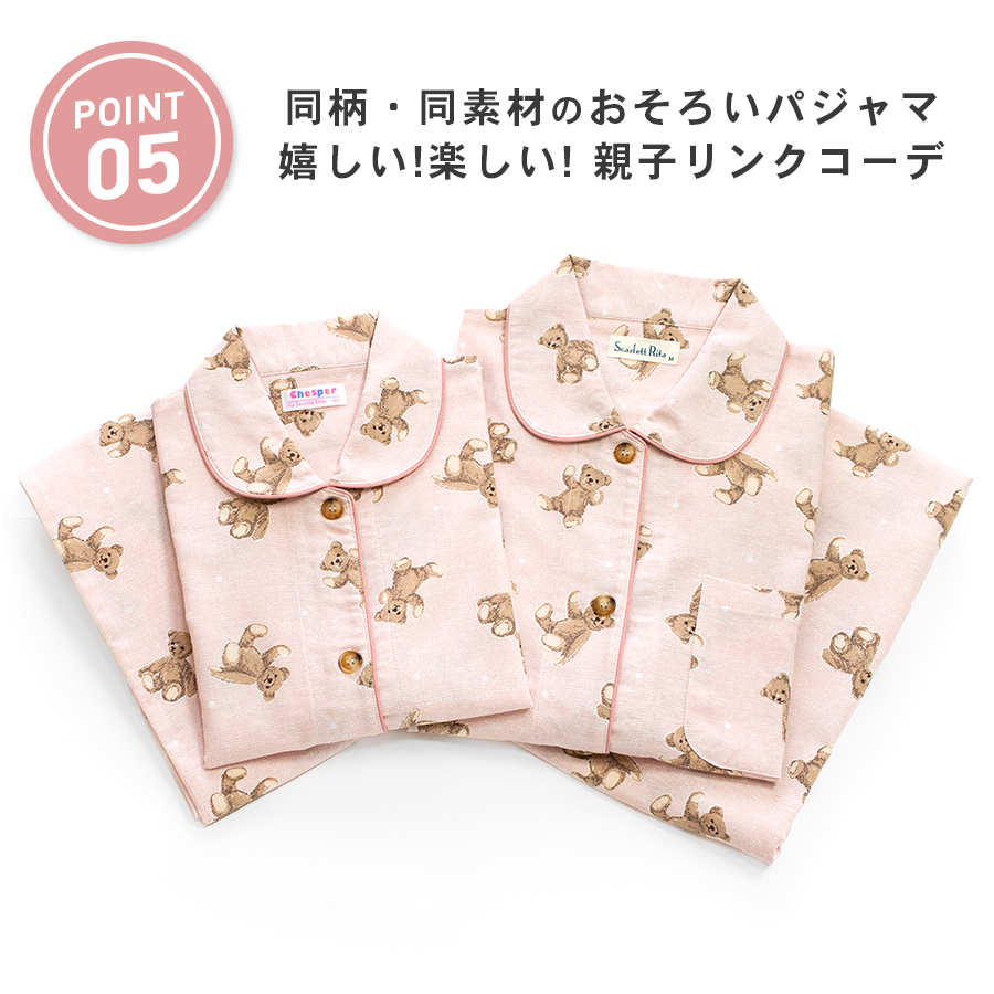 パジャマ レディース 綿100% 長袖 春 秋 前開き ボタン くま柄 親子 おそろい