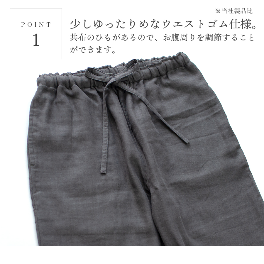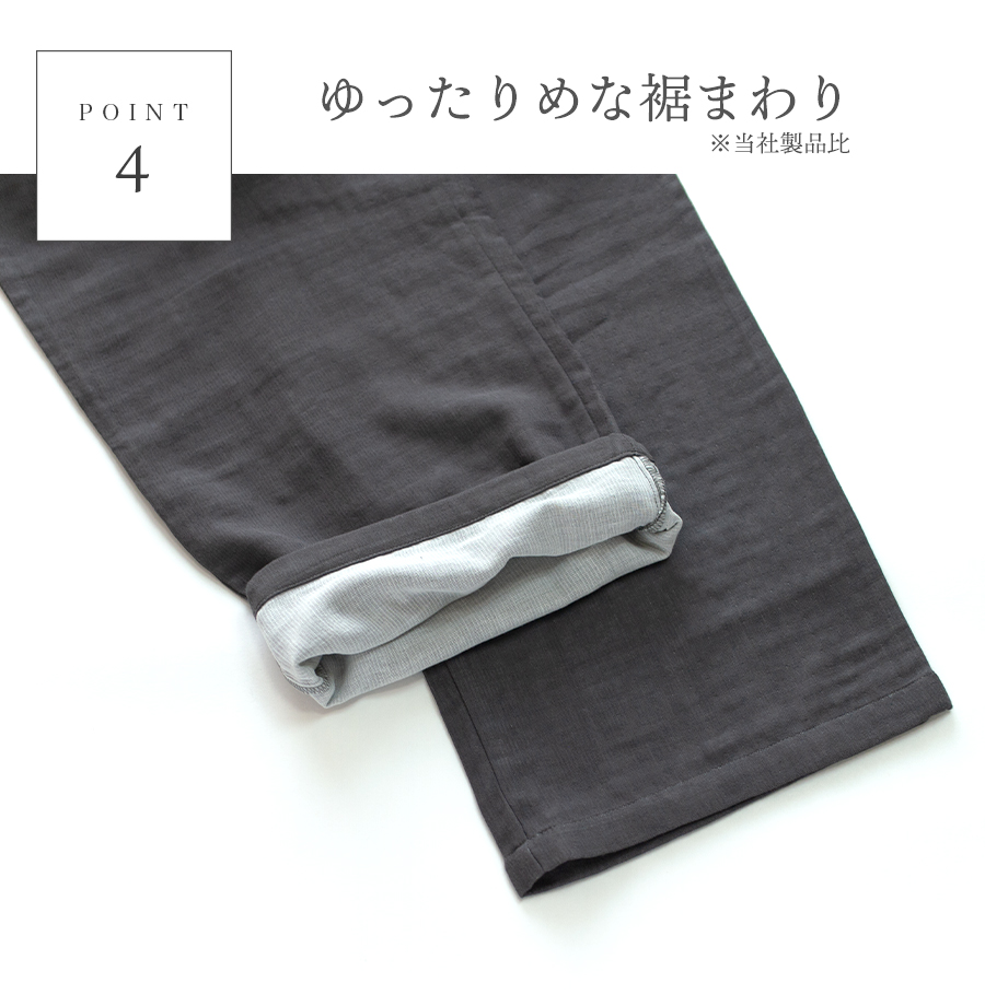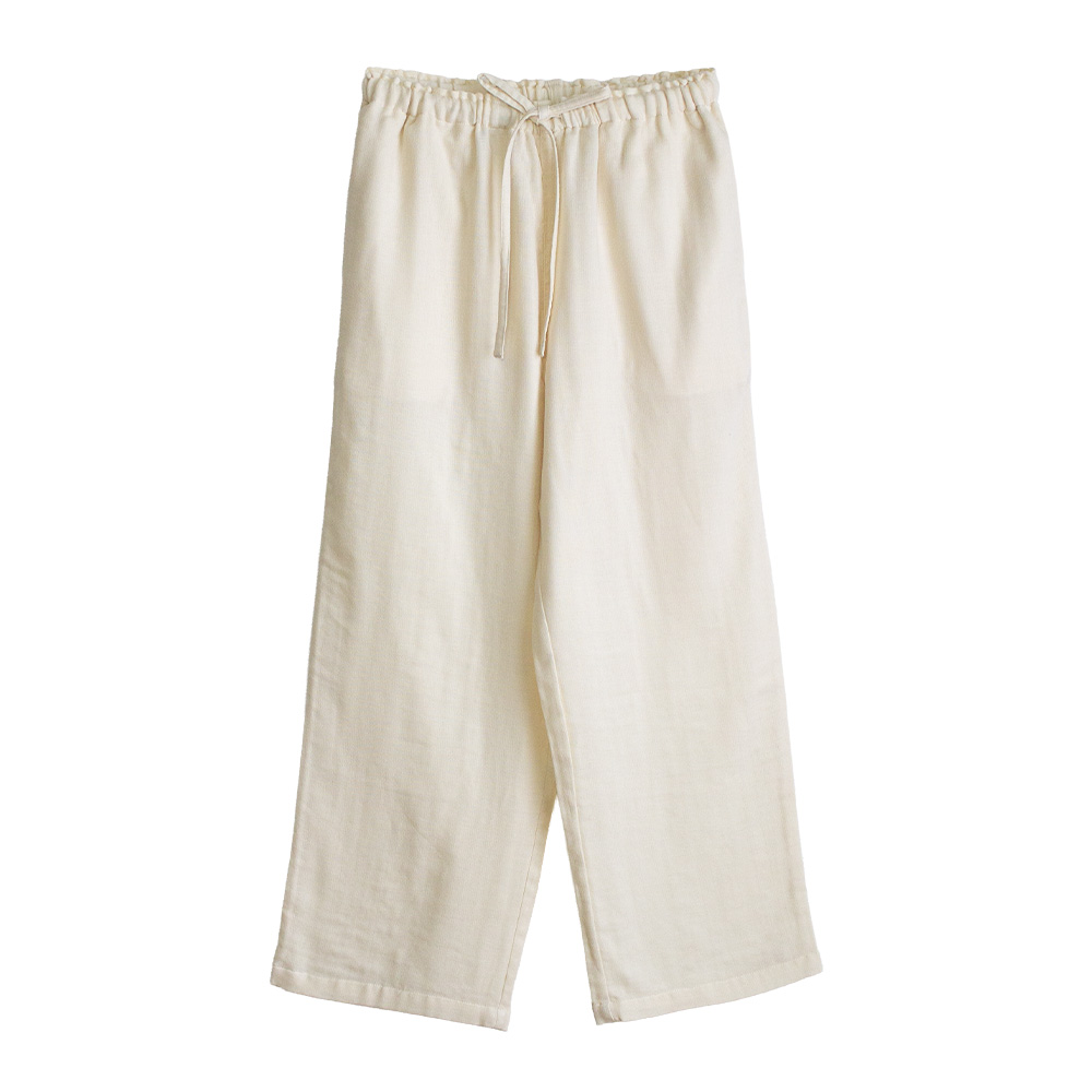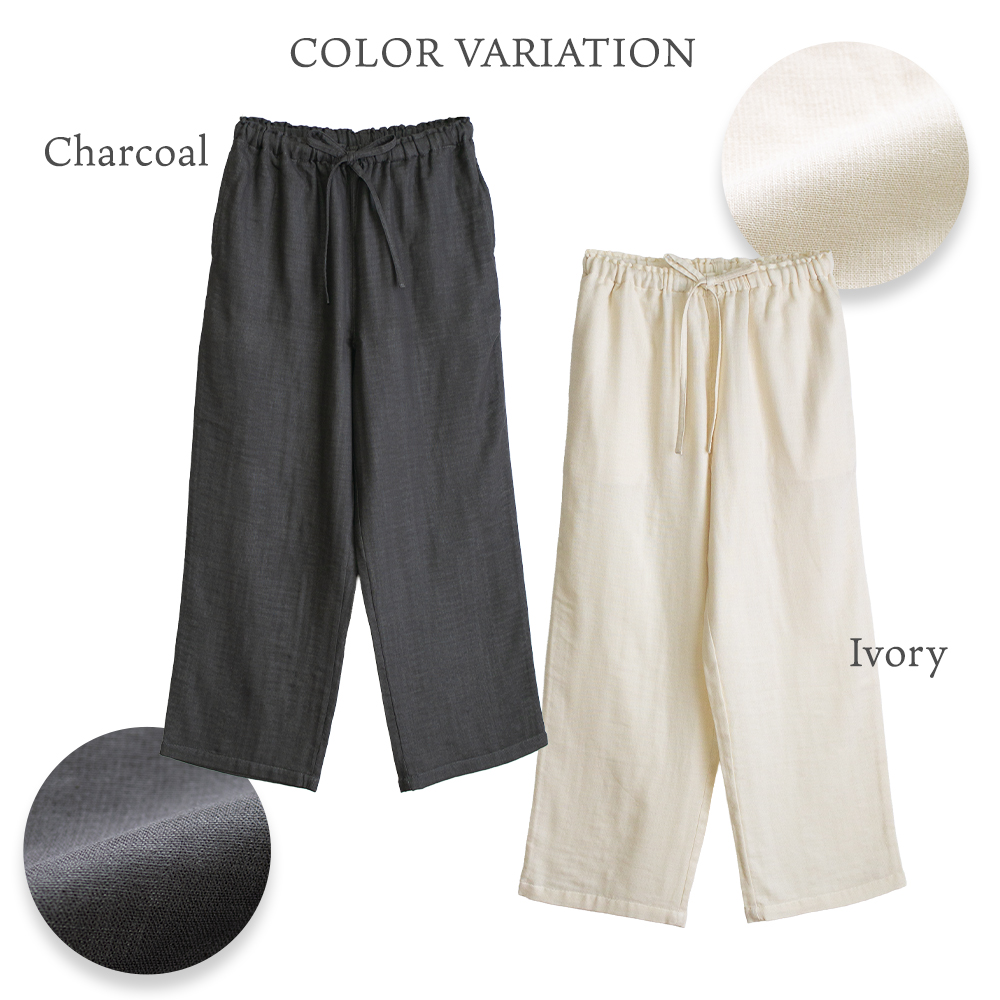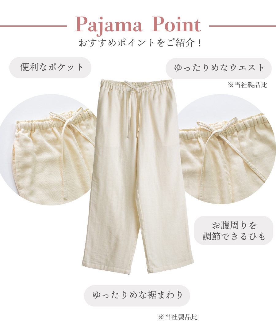 吸水性がよい綿100%のガーゼを3枚重ねて、1枚の生地にふっくらと仕上げたトリプルガーゼの単品ルームパンツです。