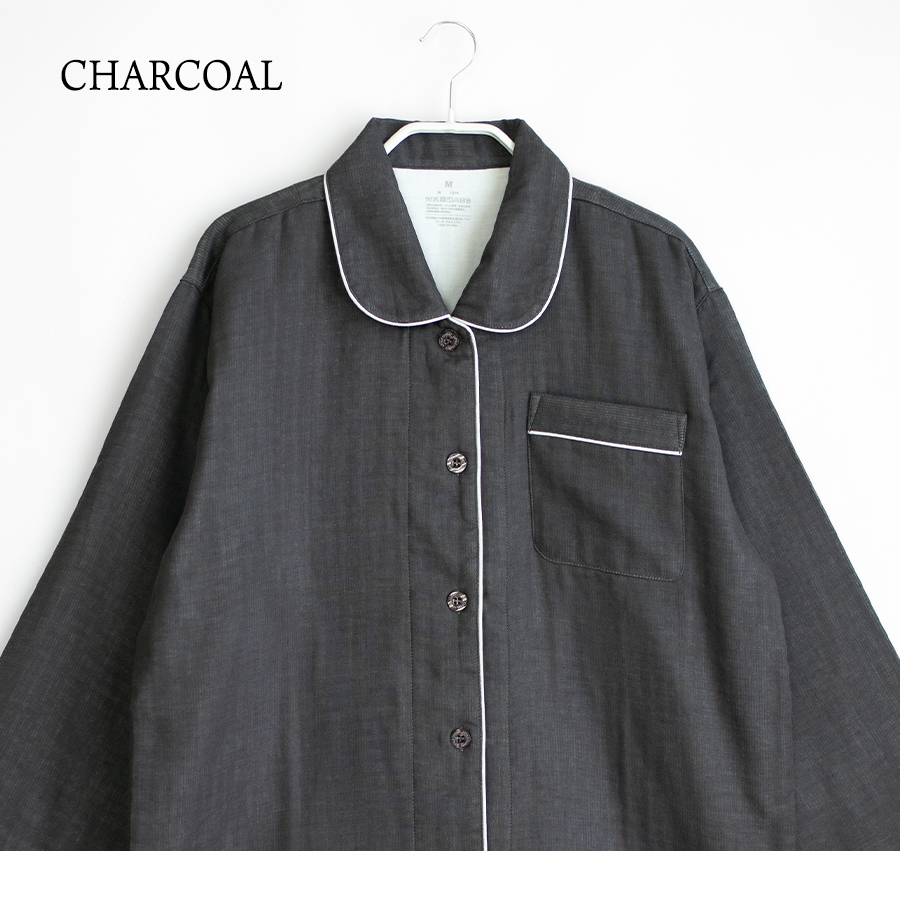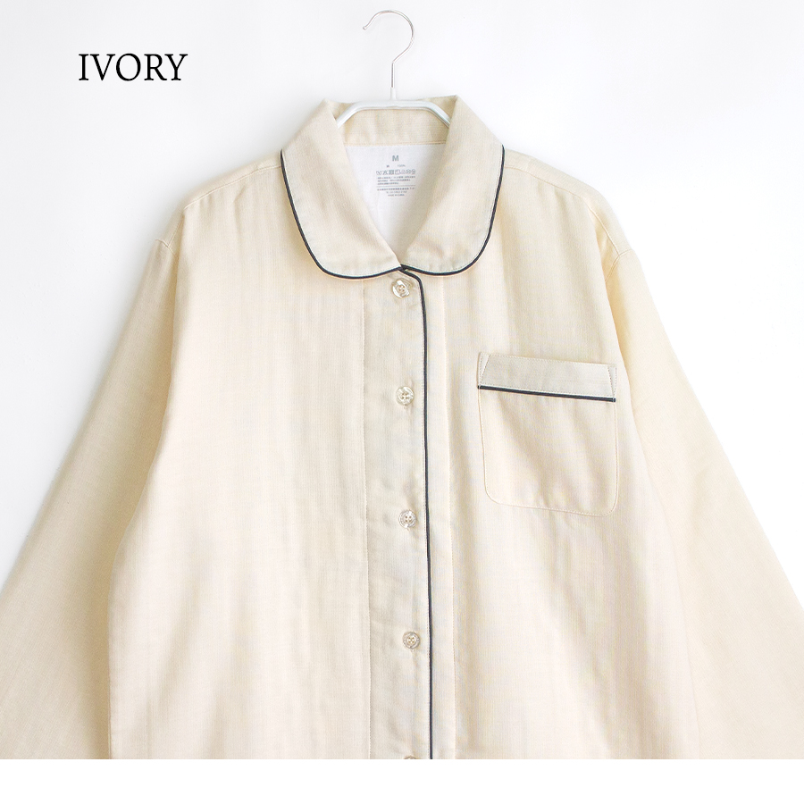 パジャマ レディース 綿100% 三重ガーゼ 長袖 秋 冬 ふんわり暖かい 前開き ボタン シャツ 無地 親子 おそろい リンク ギフト プレゼント 敬老の日 母の日