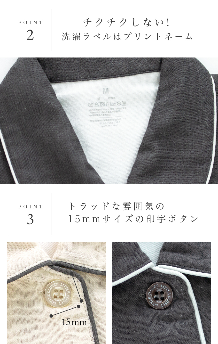 ベタ付きにくくふんわりやさしい着心地です。洗うほどに柔らかくなって肌に馴染んでいきます。