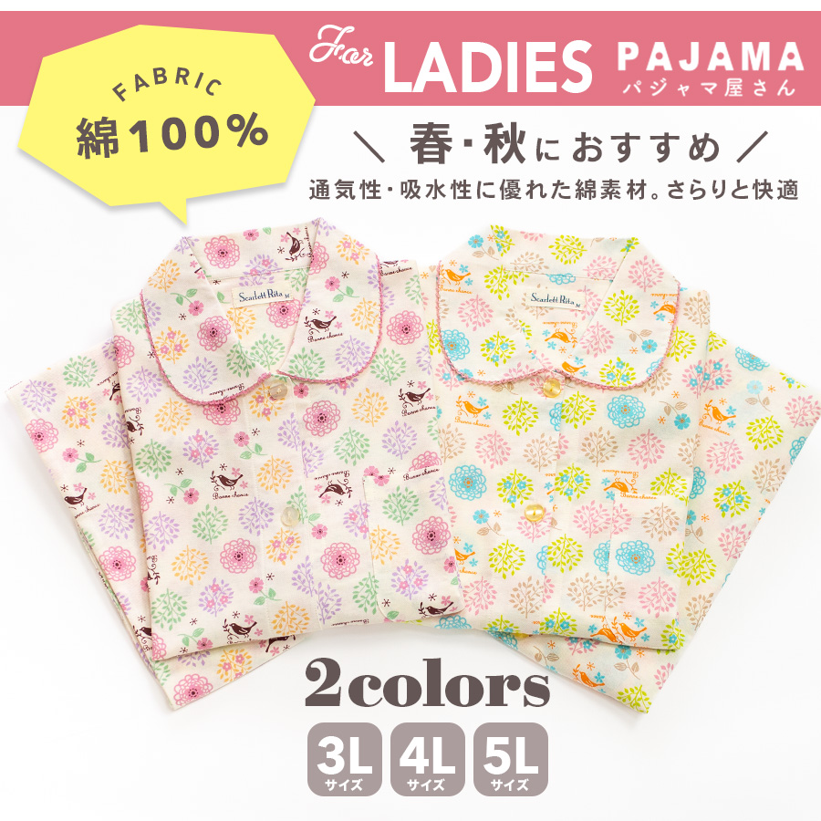 大きいサイズ パジャマ レディース 綿100% 長袖 春 秋 前開き 森ガール柄 かわいい 親子 おそろい 3L~5L
