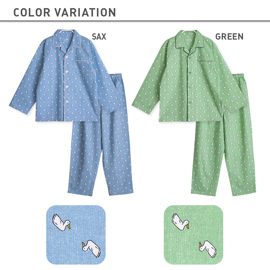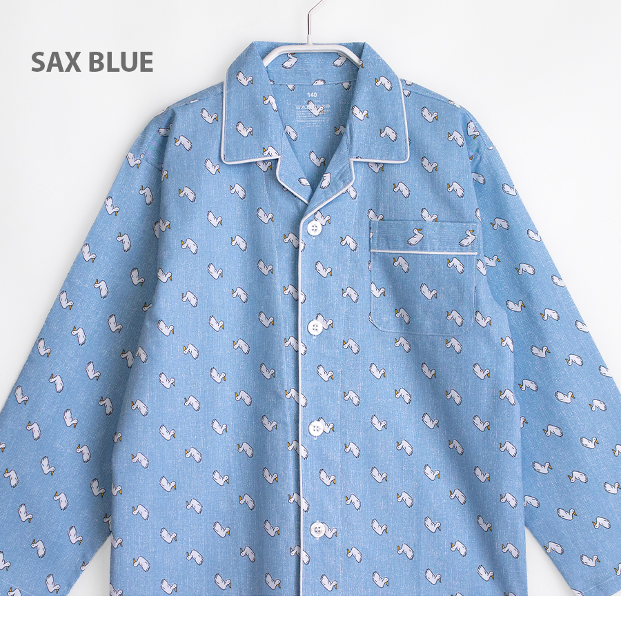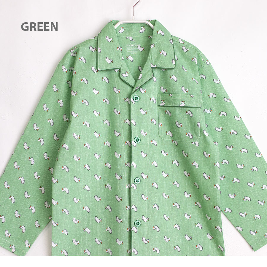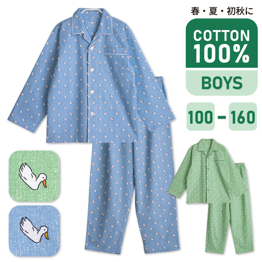 パジャマ キッズ 男の子 綿100% 長袖 春 夏 初秋 アヒル柄 前開き ボタン 薄手のシャツ 100-120 子供 家族 おそろい リンクコーデ