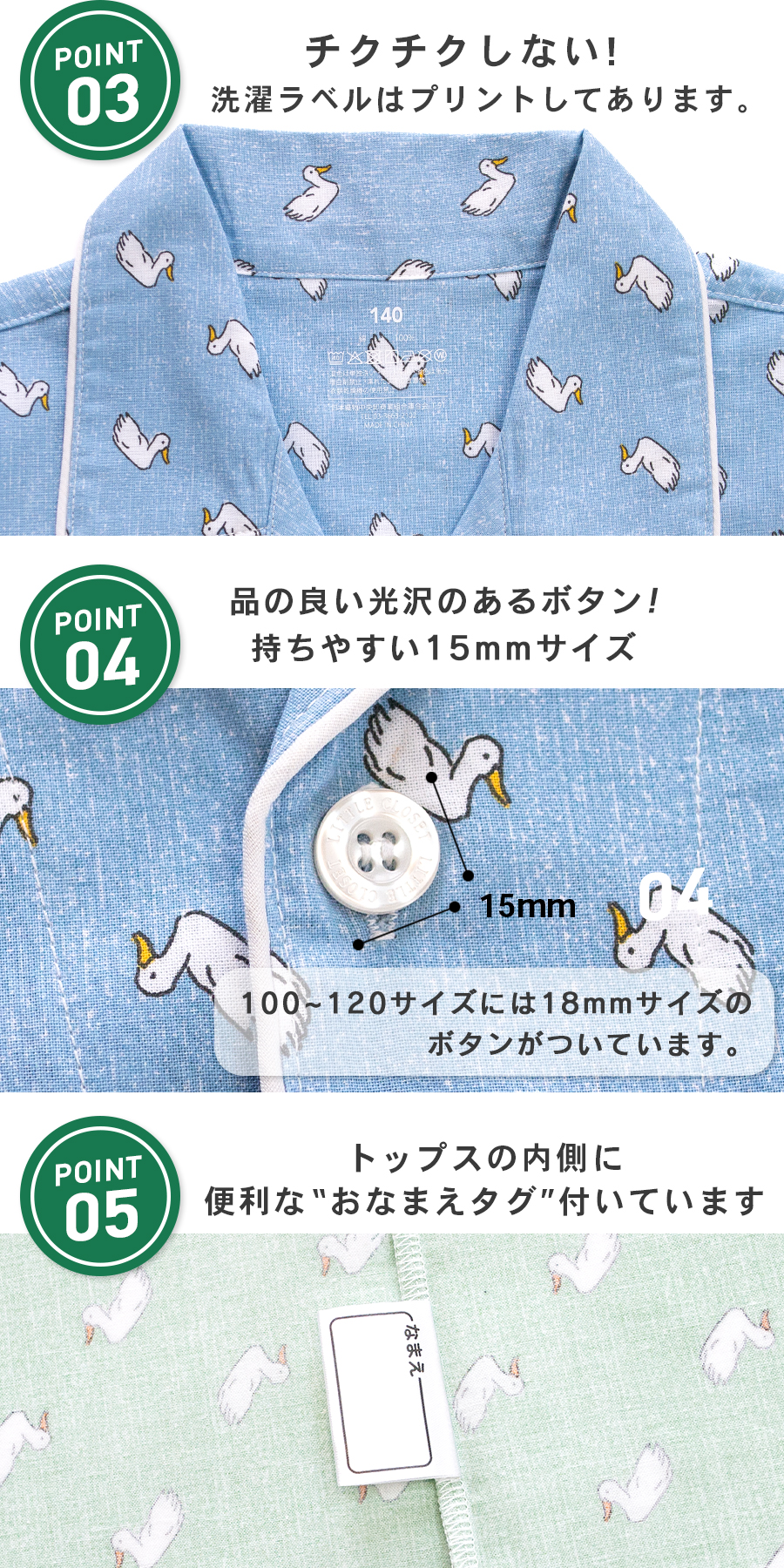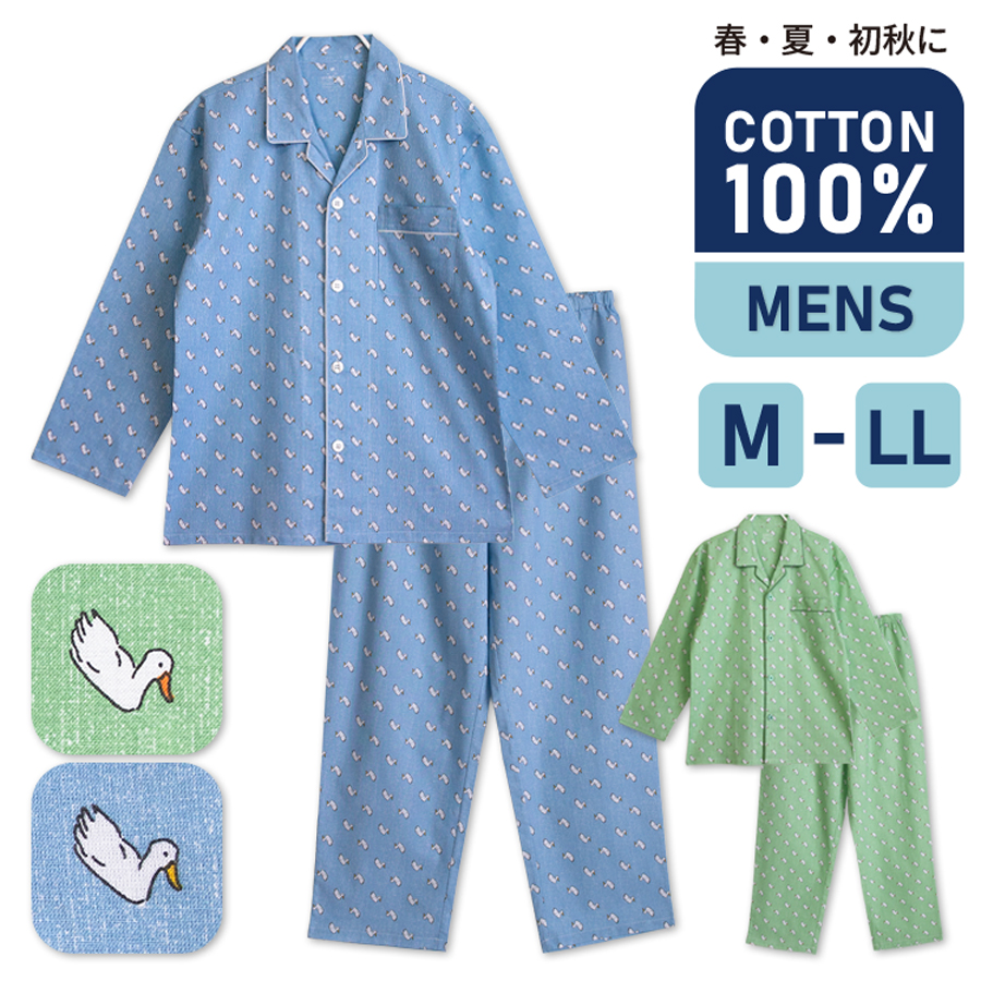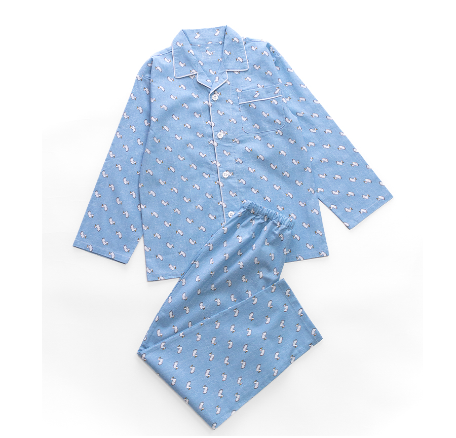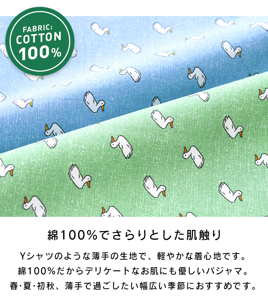 パジャマ キッズ 男の子 綿100% 長袖 春 夏 初秋 アヒル柄 前開き ボタン 薄手のシャツ 100-120 子供 家族 おそろい リンクコーデ
