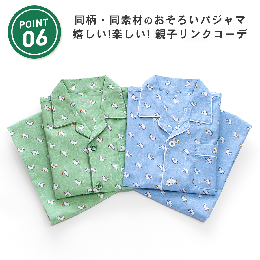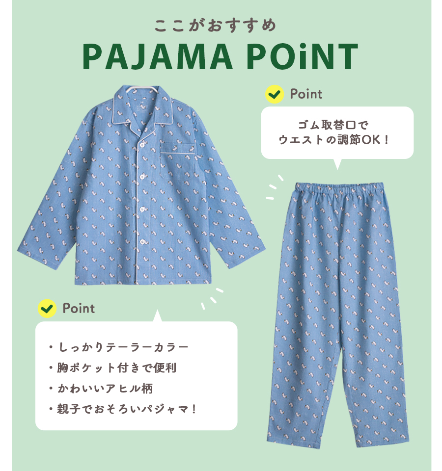 このパジャマはジュニアサイズやメンズサイズも販売しており、おそろいリンクコーデが楽しめます。
