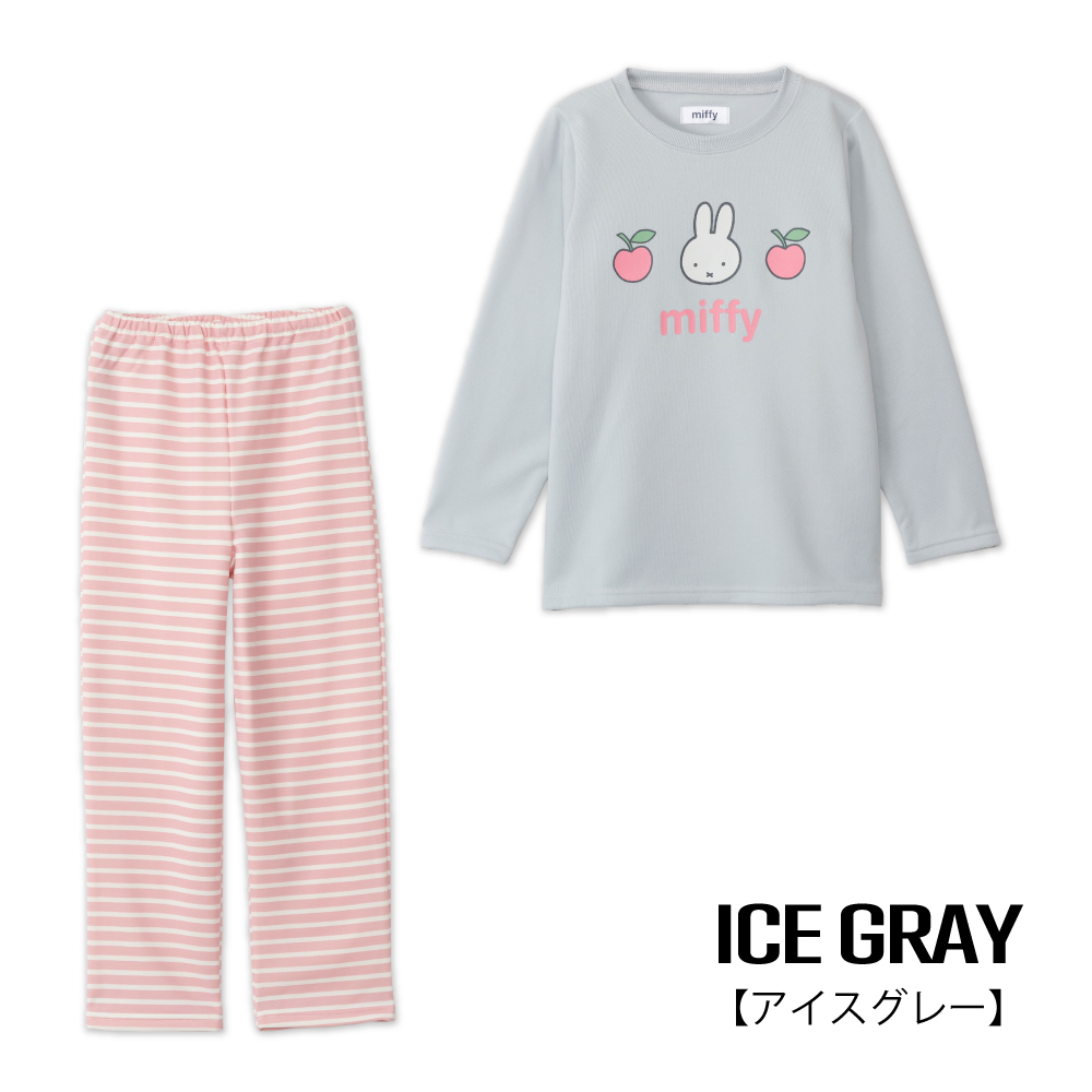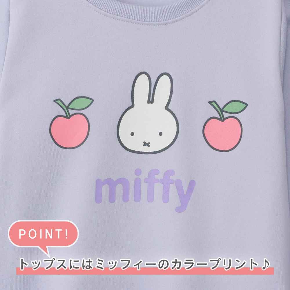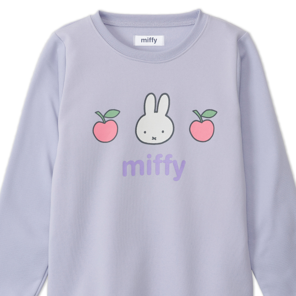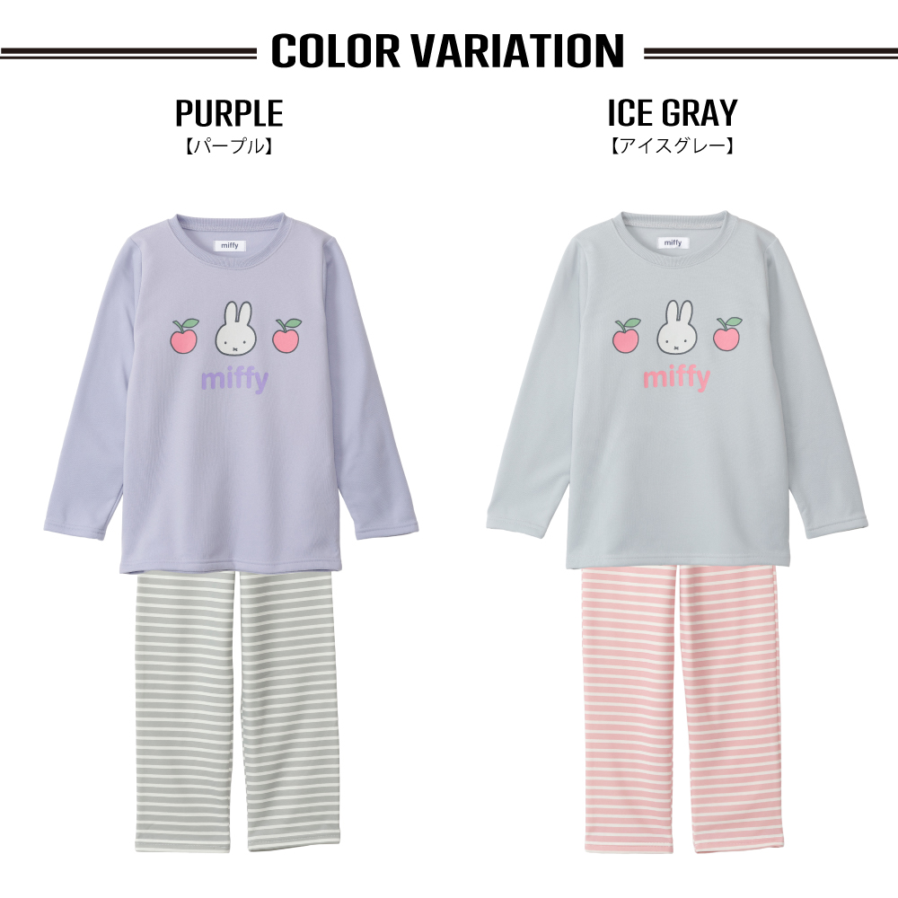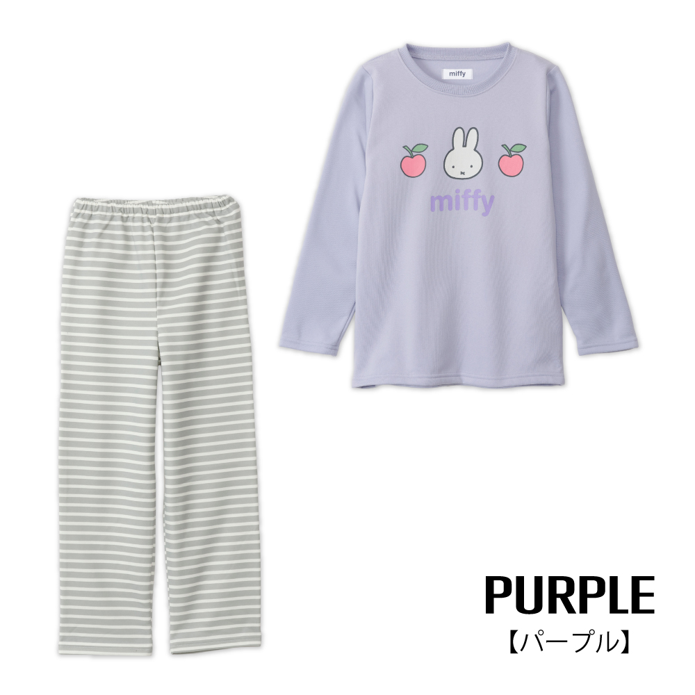 ミッフィー パジャマ ガールズ シャギー 裏起毛 長袖 長パンツ 秋 冬 胸プリント パープル アイスグレー 100-160 76563wh