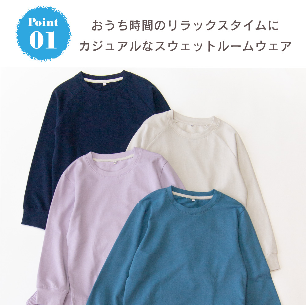 綿100%で出来た滑らかな肌触りの裏毛スウェットパジャマです。