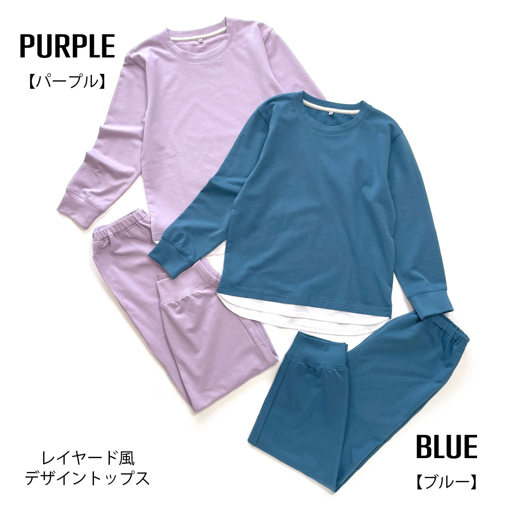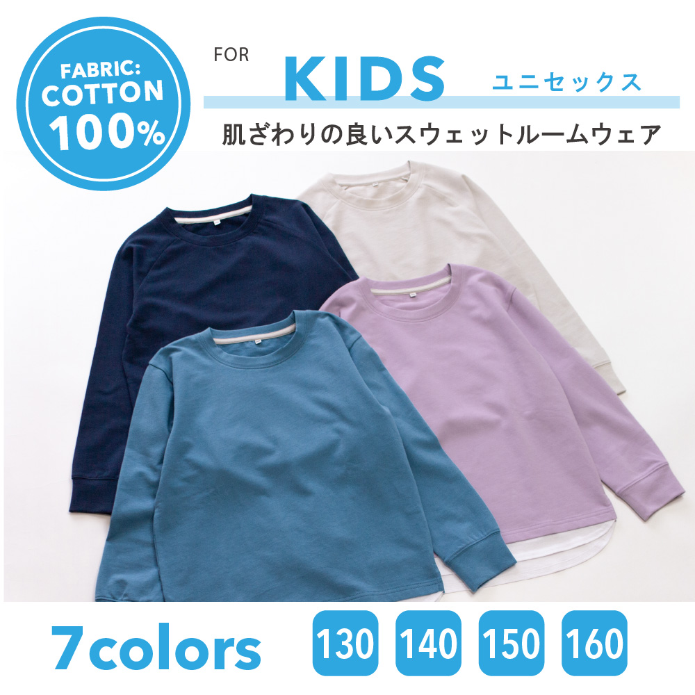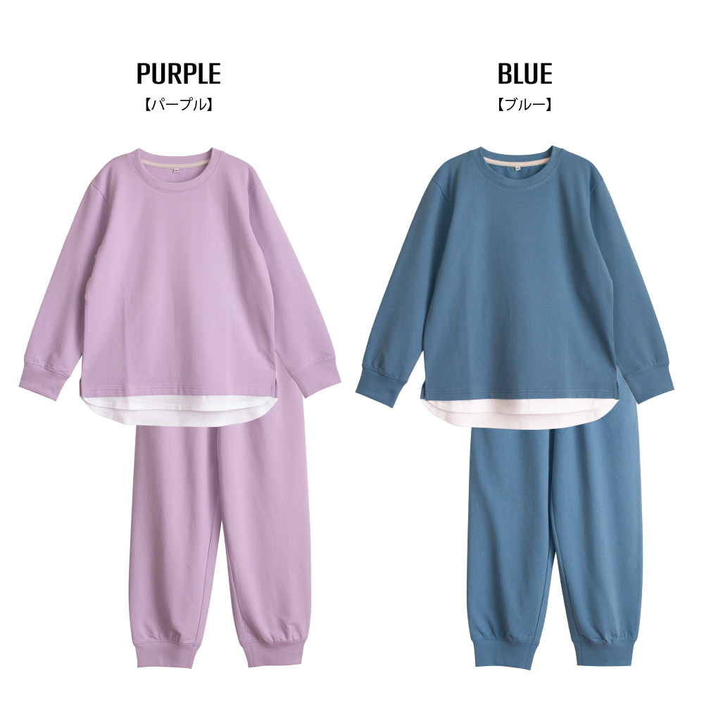 スウェット パジャマ 男の子 女の子 綿100% 長袖 春 秋 初冬 フレンチテリー 無地 レイヤード 重ね着風 家族 おそろい 120 130 140 150 160