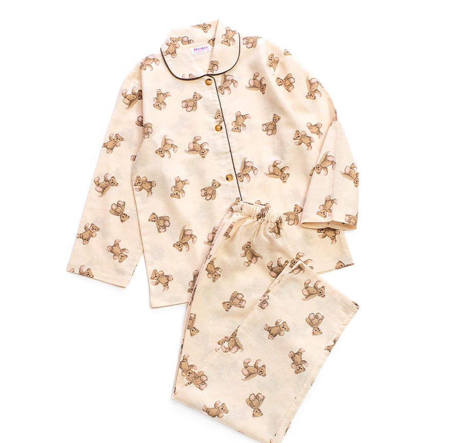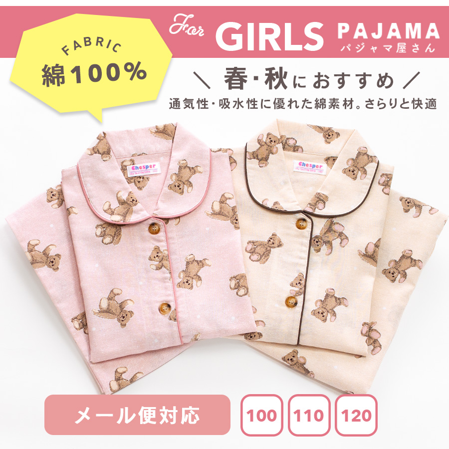 パジャマ キッズ 女の子 綿100% 長袖 春 秋 前開き くま柄 100 110 120 親子 おそろい メール便なら 送料無料