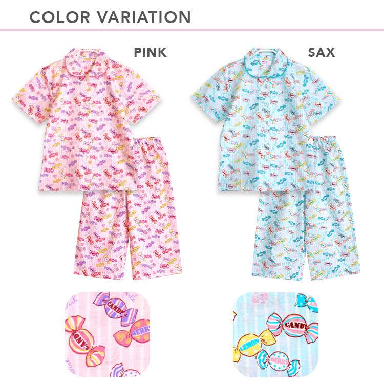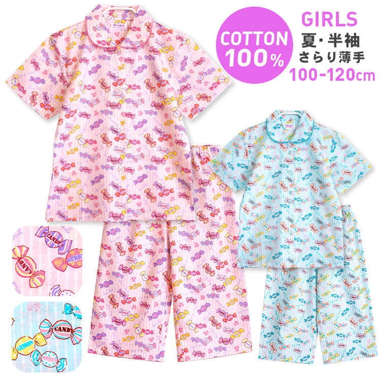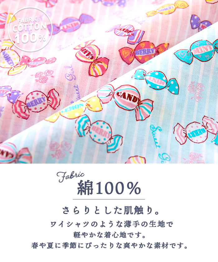パジャマ キッズ 女の子 綿100% 半袖 春 夏 前開き ボタン キャンディ柄 薄手のシャツ 100 110 120 おそろい