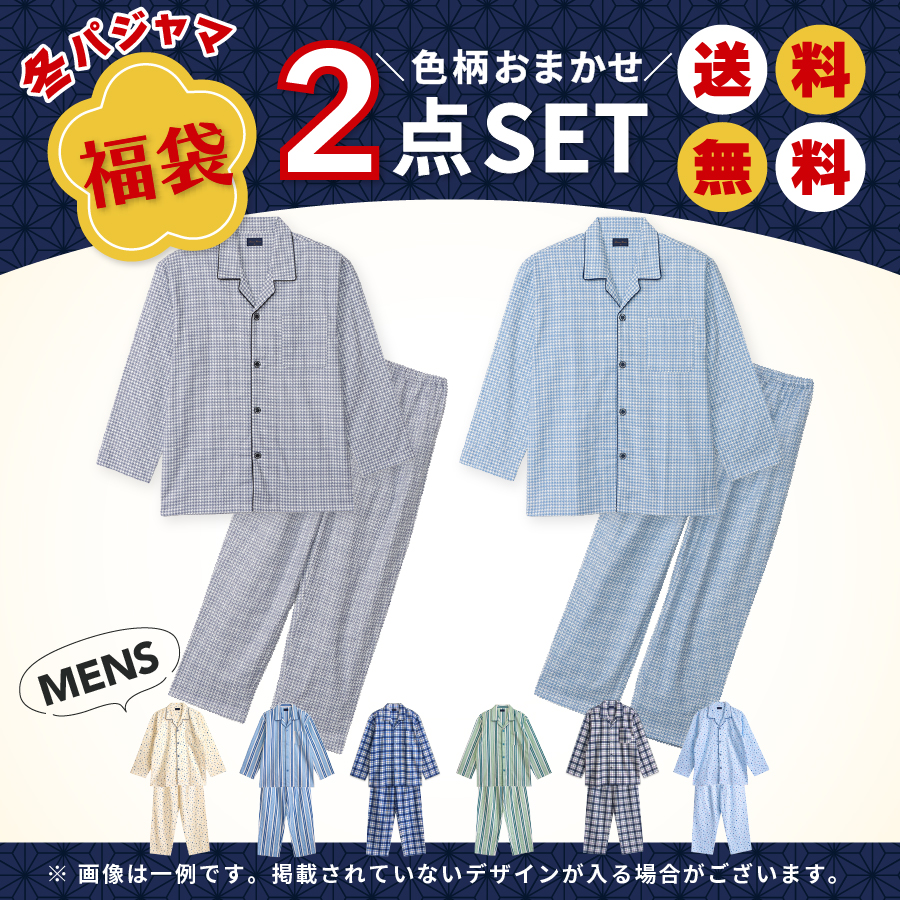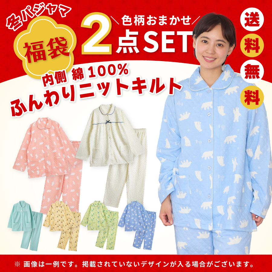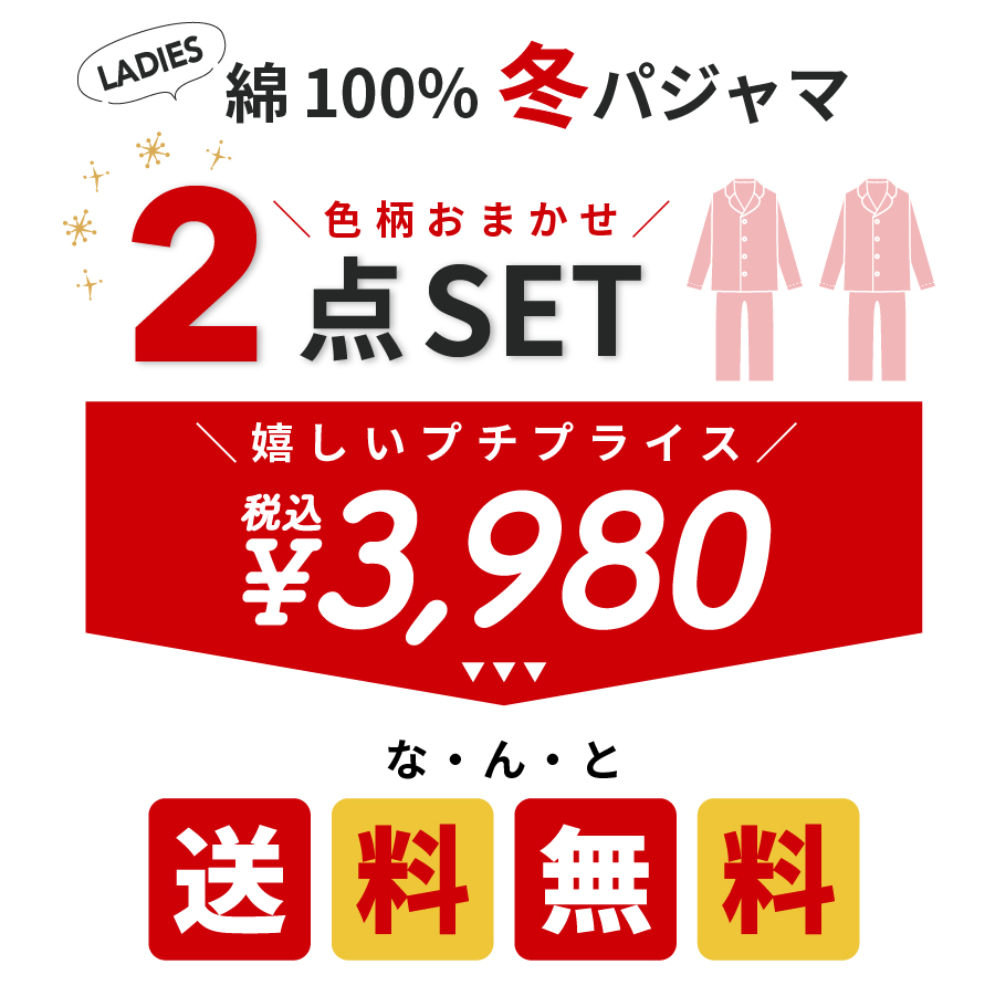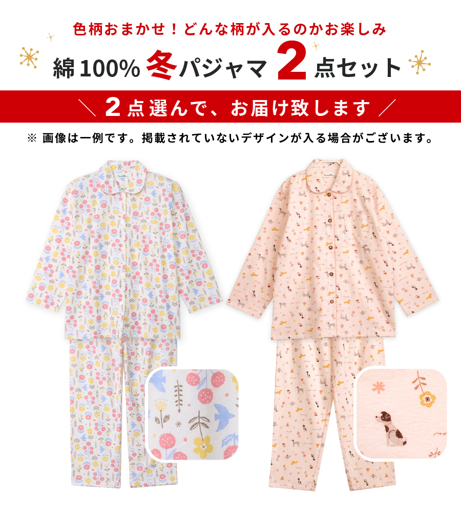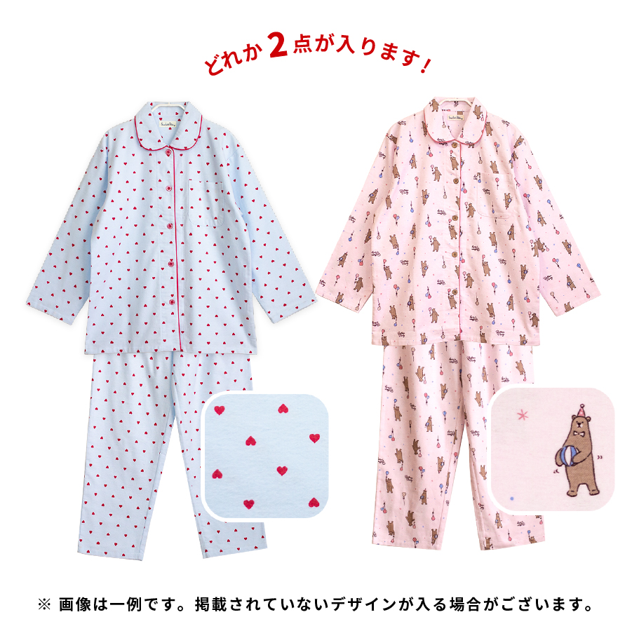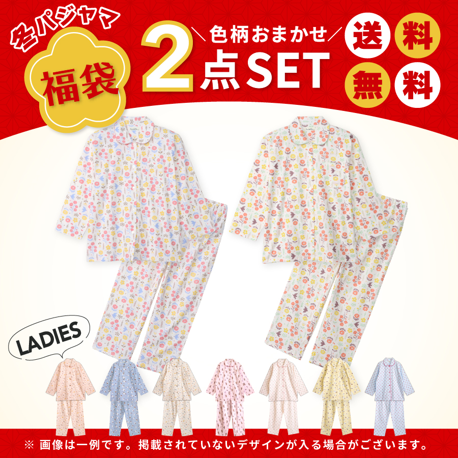 福袋 レディース 冬パジャマが2点が入ったお得なセット 綿100% ネル起毛 M L LL 前開き シャツ ギフト プレゼント fuku-ladys-win