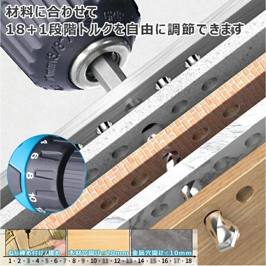 大容量バッテリー 電動ドライバー 充電式 小型 12V 最大トルク25N.m 無断変速 正逆切替 18+1段階トルク調節 電動ドリル DIY家具組み立て電動工具 1年保証