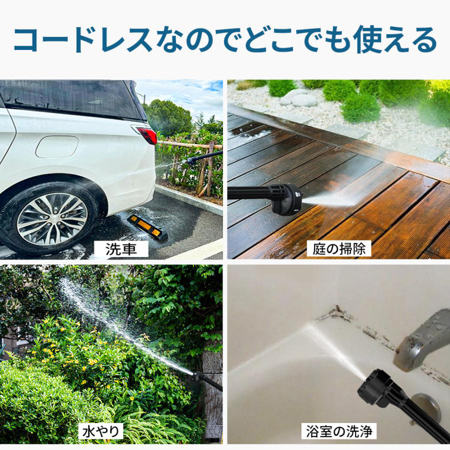 【給水便利&専用タンク不要!】★専用の給水ホースが付属しているのと、バッテリー式なので面倒な水道栓の接続作業もなく、水道や電源がない場所でも、洗浄の準備が簡単です。★【手軽に使えるコードレス&タンクレス】取り回しが良い充電式コードレス高圧洗浄機なので、電源がない場所でも使用可能です。バケツなどに入れた水をくみ上げる吸水タイプで。★オプションで仕様を確認してからご購入いただければ幸いです。