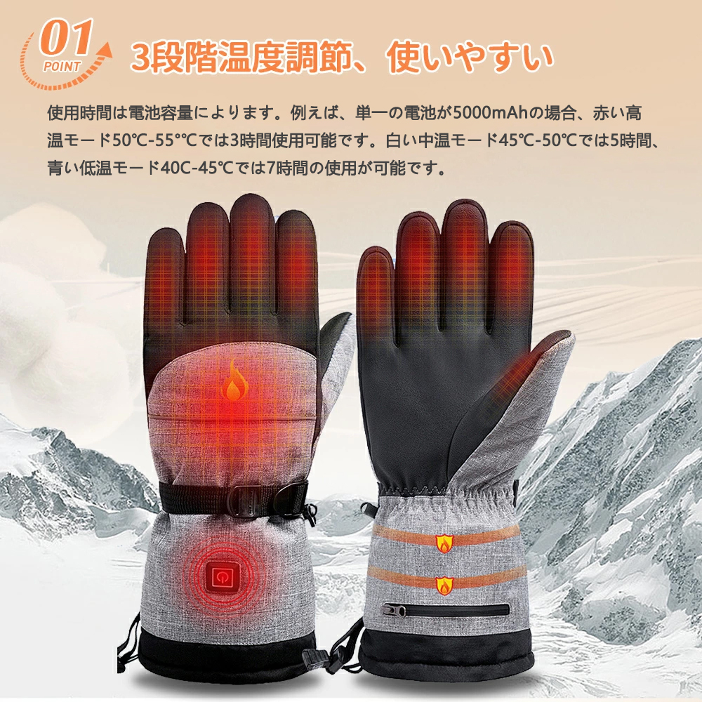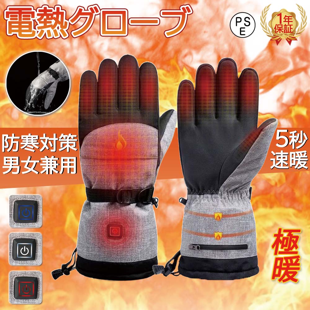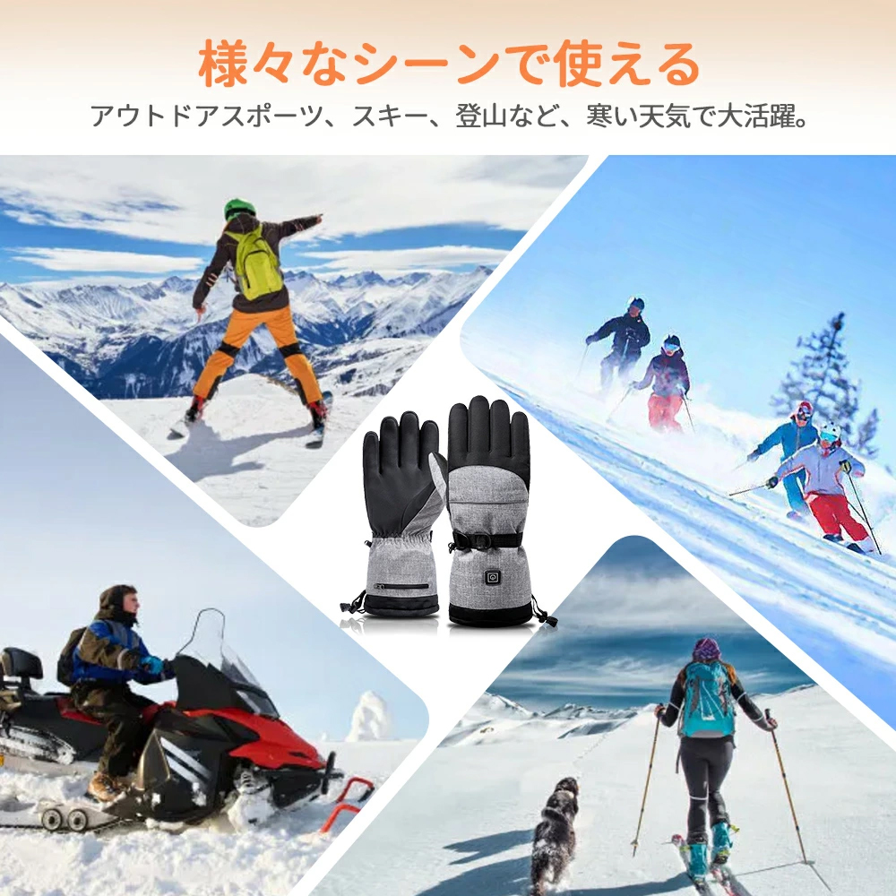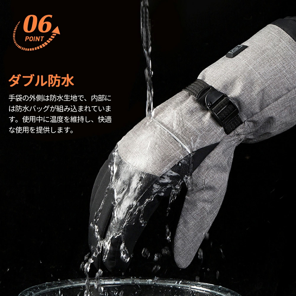 電熱グローブ 滑り止め 室外作業 バイク用 撥水 usb給電 男女兼用 通勤 軽量 即暖 防寒 水洗い可能 バッテリー 3段階調温 電熱手袋 スキー 防寒対策 寒さ対策