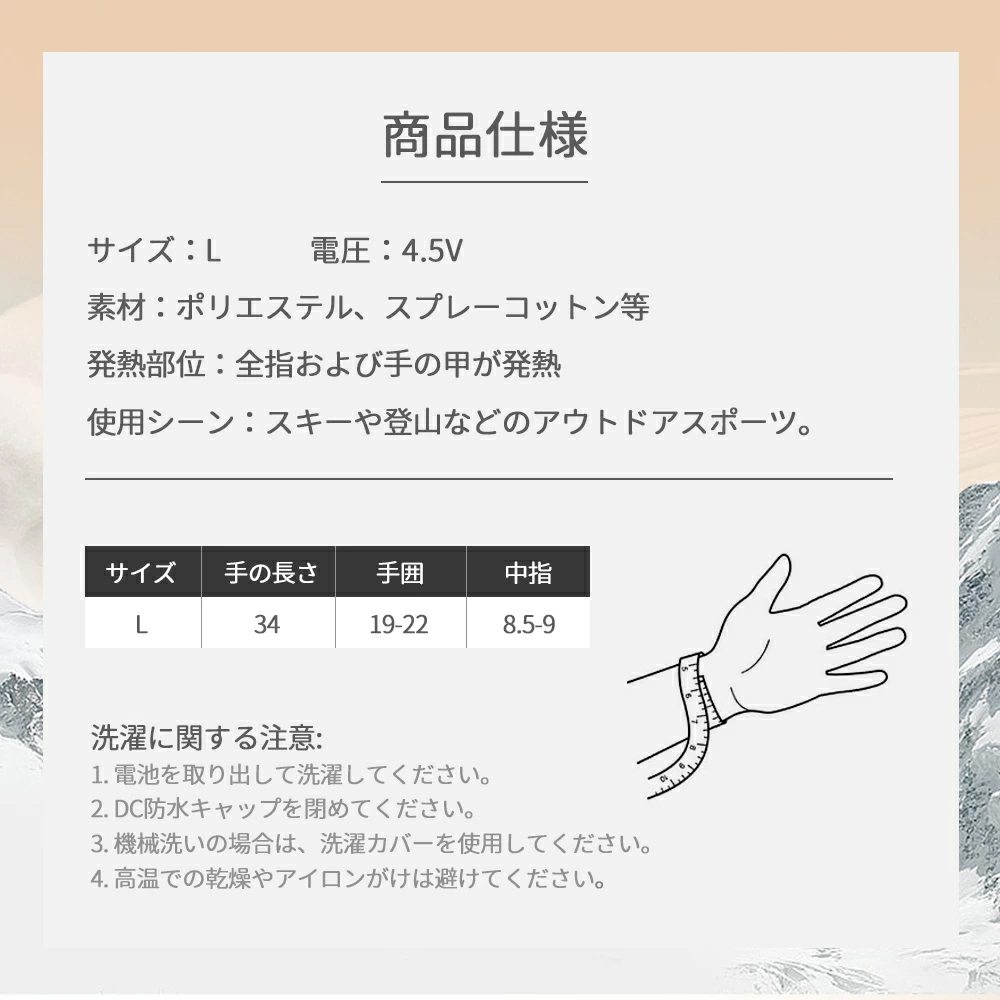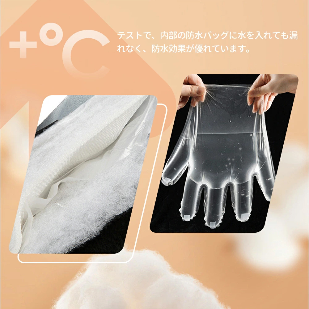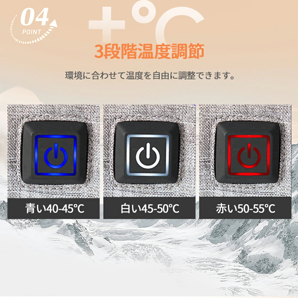 【速暖・防撥水素材】炭素繊維発熱原理に従って使用寿命が長くて、熱エネルギー変換率が高くて55-50°Cまで温めます。防水材料ポリエステルを使用し、防撥水性も持っています。ベルクロが付きのデザイン、装着、脱着の容易さ、滑り止めとサイズ調整ができます、風の侵入を防ぎます。