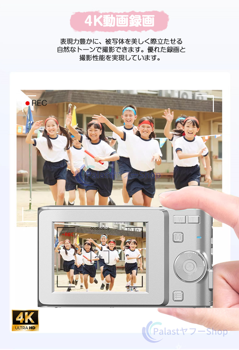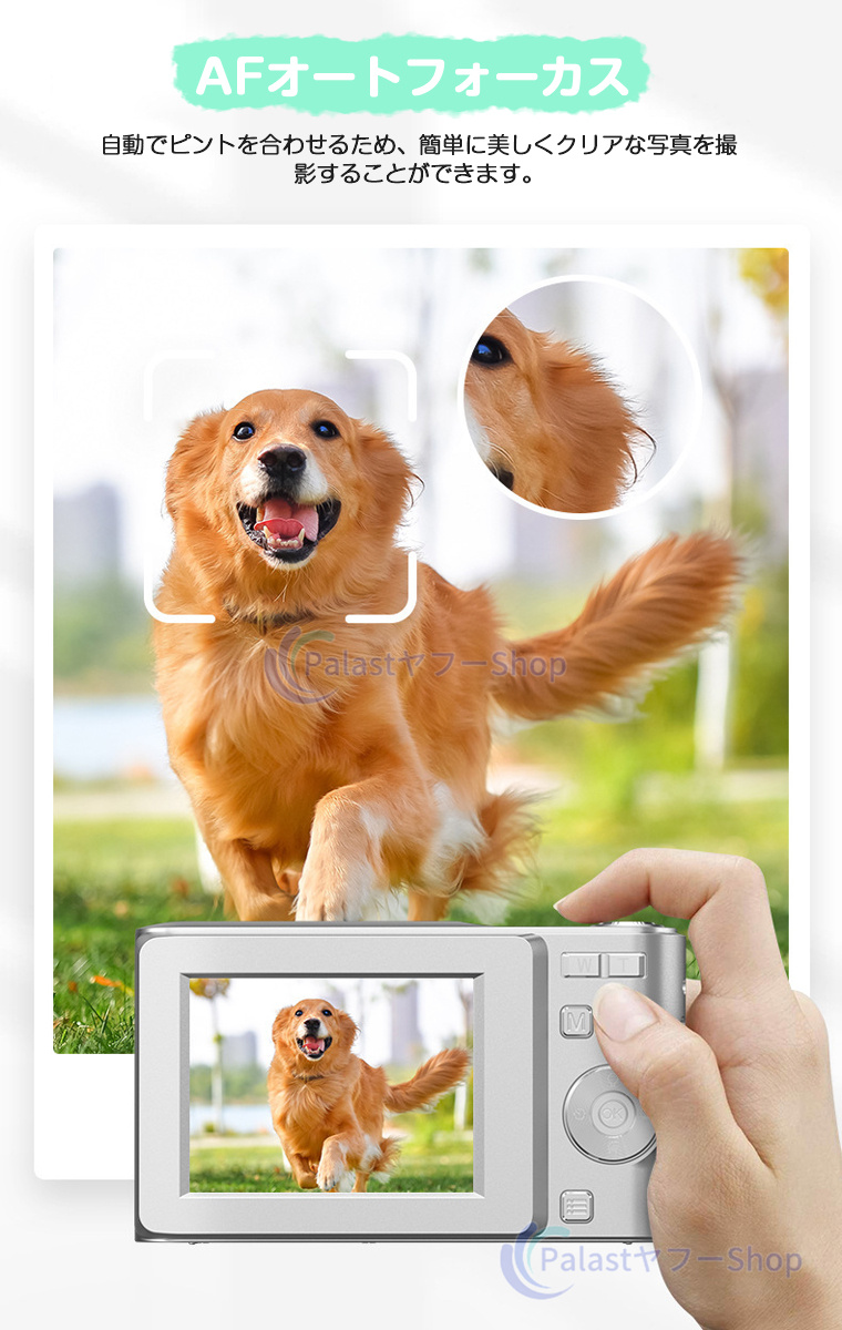 このデジカメはオートフォーカス機能を搭載しております。シンプルな操作で自動的にピントを合わせて、初心者でも鮮明的に写真を撮ることができます。(シャッターボタンを浅い押してピントをあわせます。更に深く押して撮影できます)。また4Kビデオ解像度と最大5000万の写真解像度という高画質で、いつでもご家族やお友達との楽しい時間をとらえて記録できます。