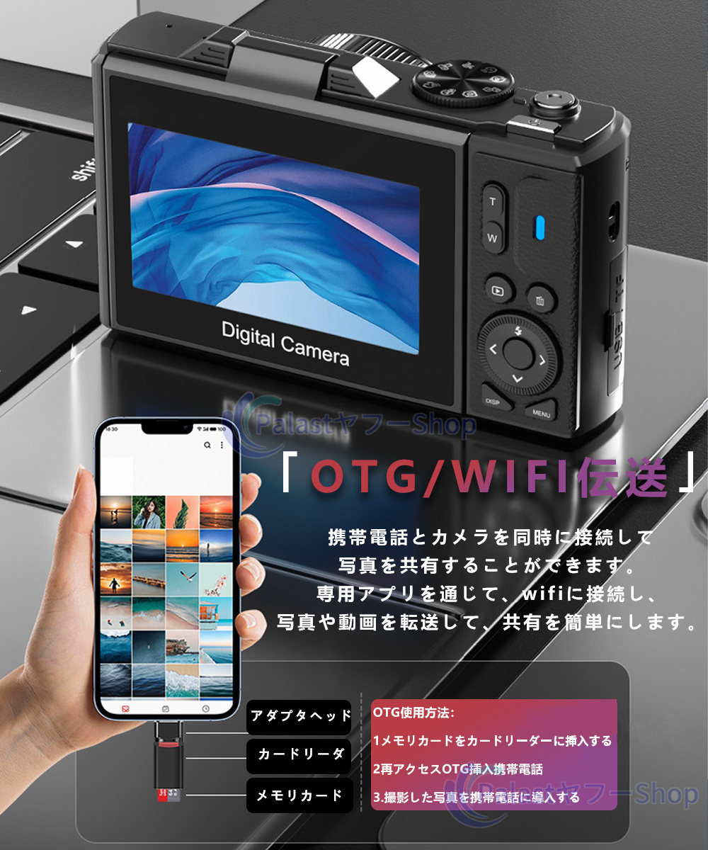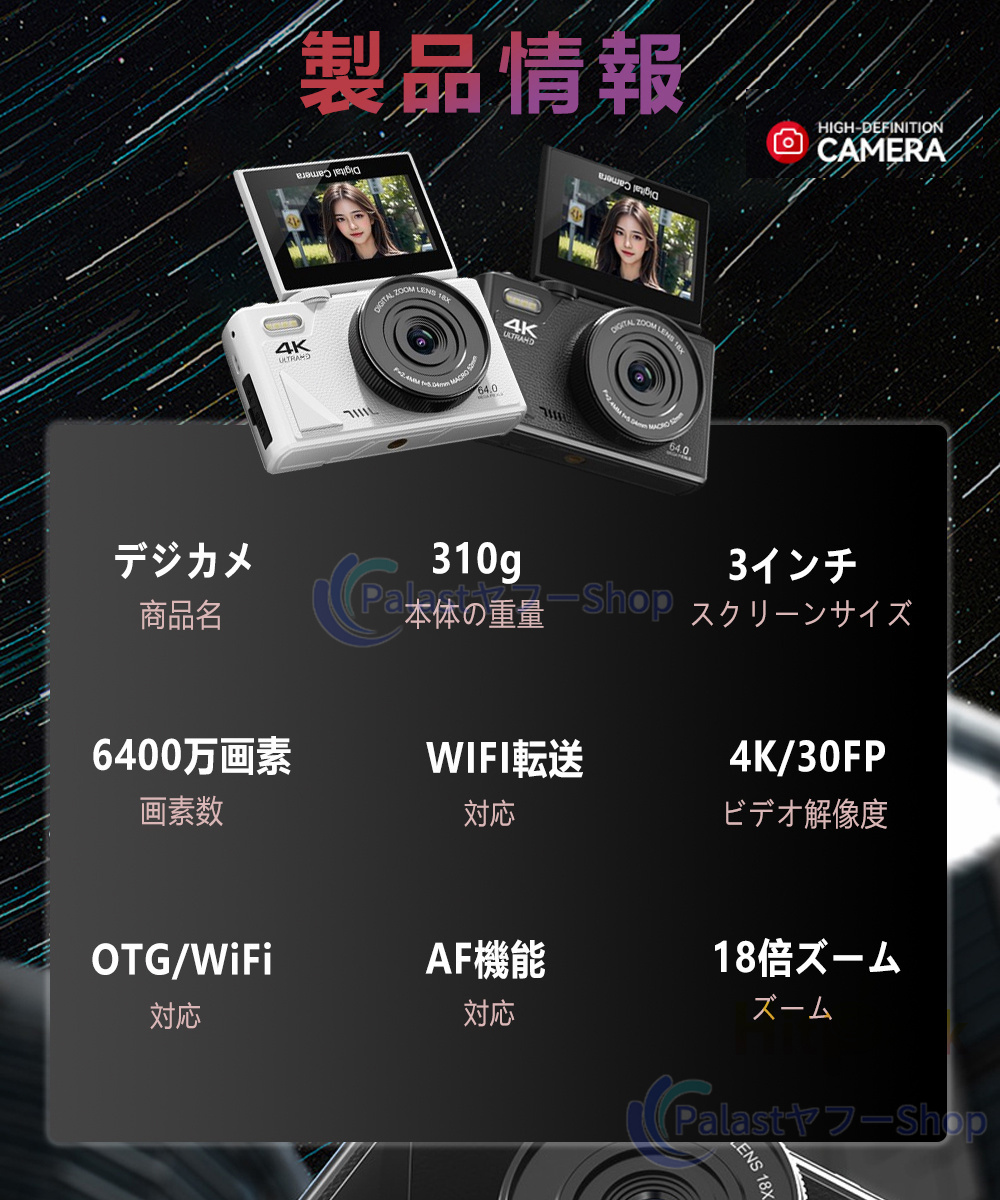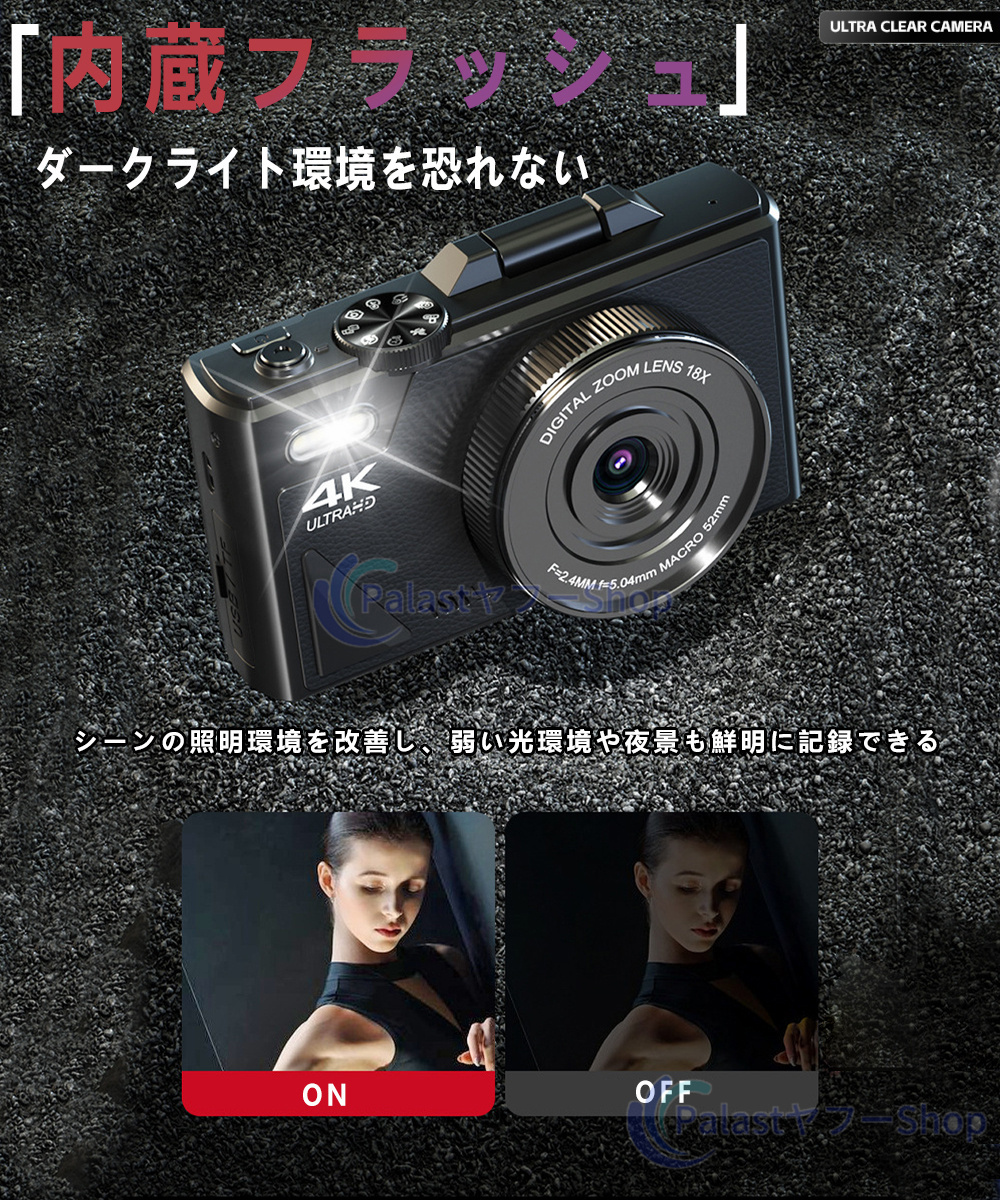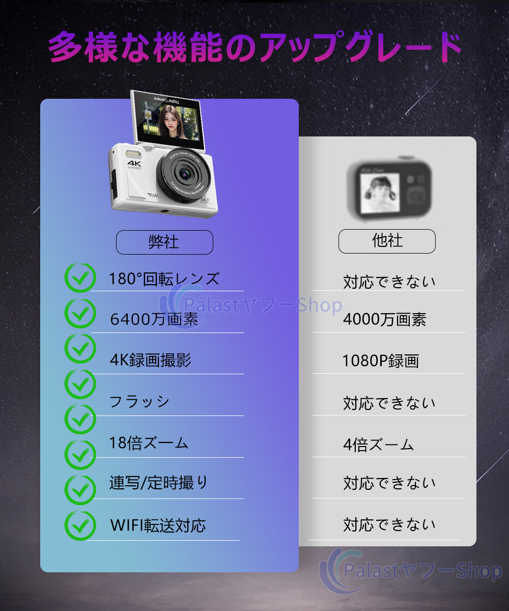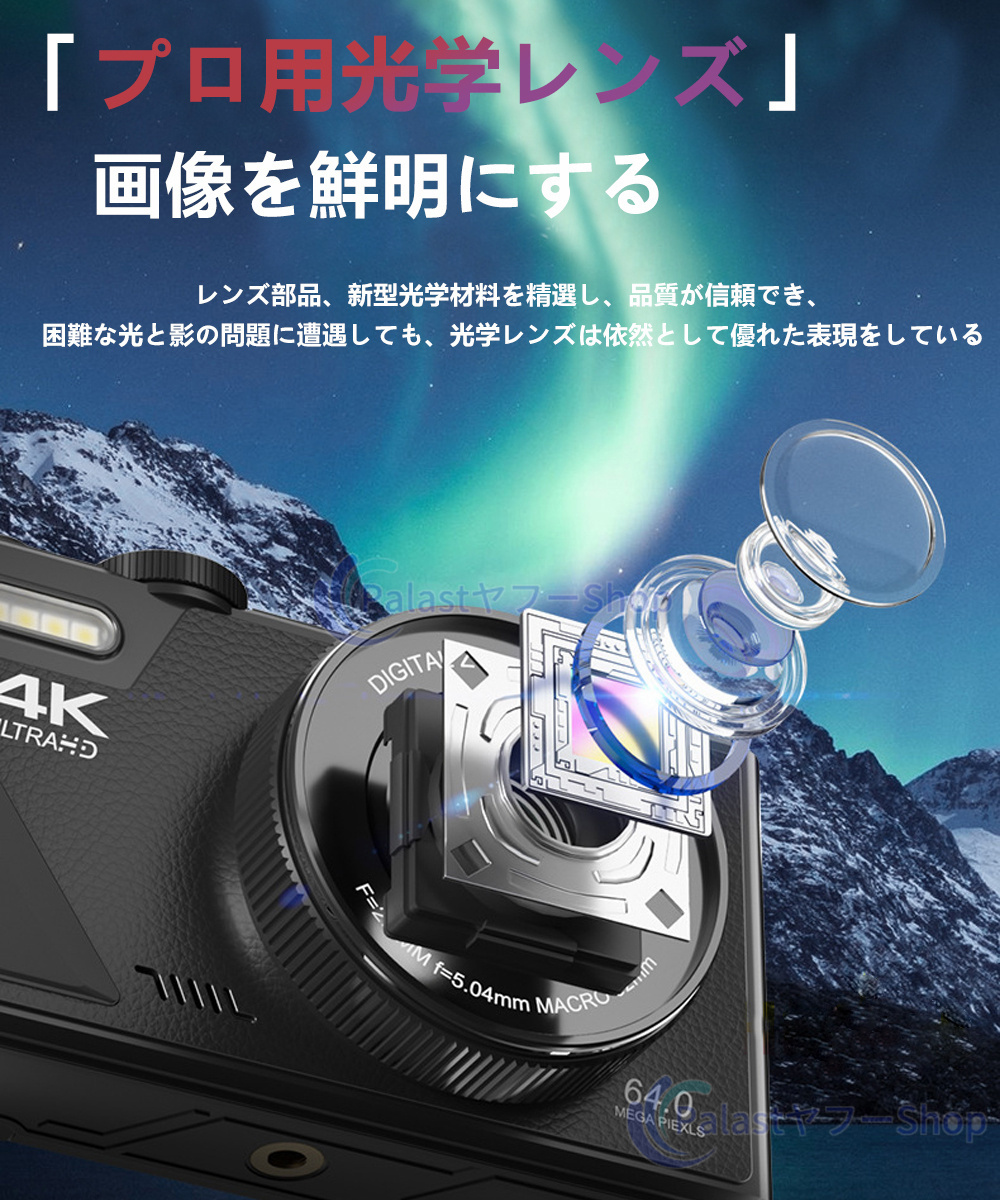 デジタルカメラ 4K wifi対応 6400万画素 小型 18倍ズーム 3.0インチ 大画面 180°回転 動画撮影 オートフォーカス 携帯便利 修学旅行 初心者 手振れ補正 誕生日