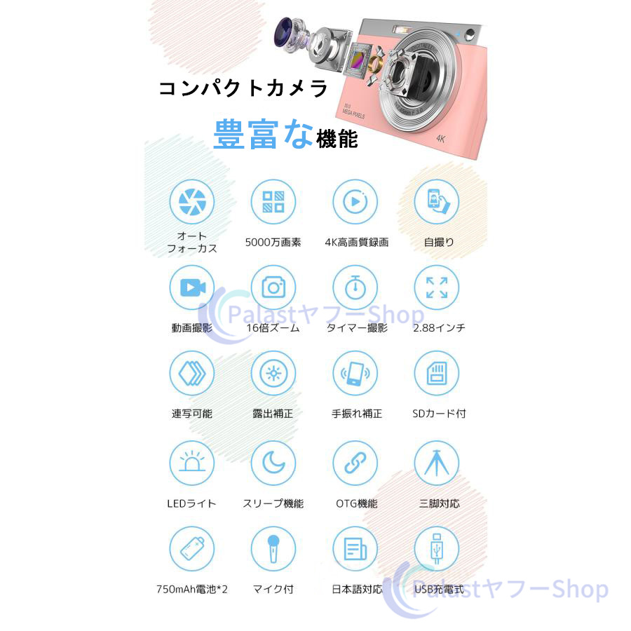デジタルカメラ 4k 安い 安いキヤノン 一眼レフ 5000万画素 ビデオカメラ HD小型デジタルカメラ 2.88インチ大画面 16倍ズーム 高画質 自撮り 動画 撮影 AFオート