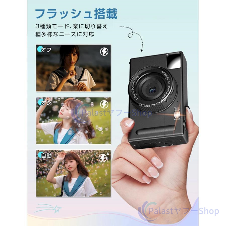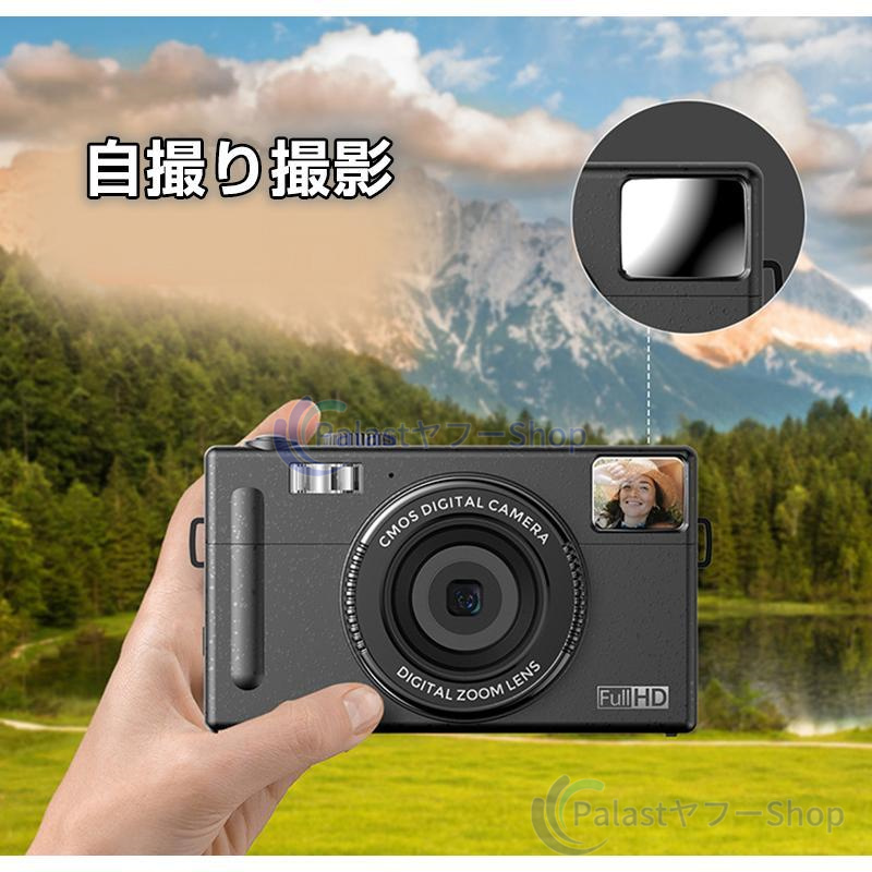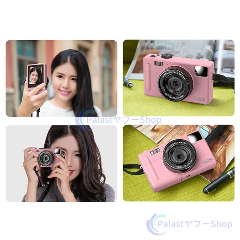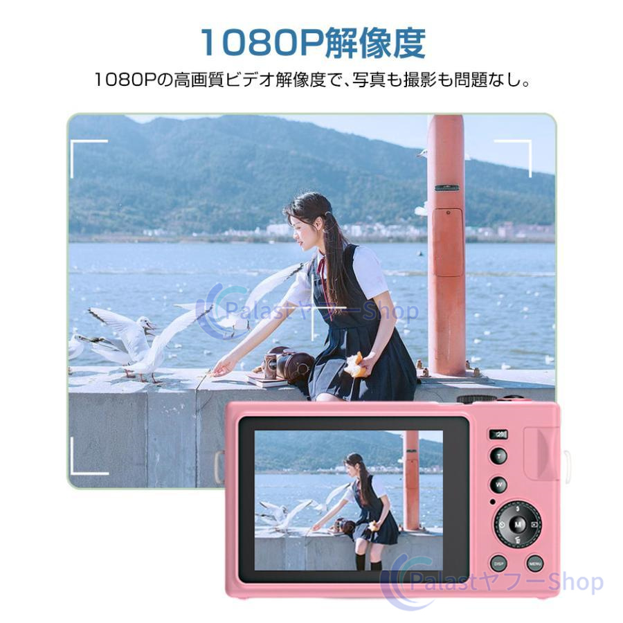 【多機能なカメラ】連続撮影、笑顔キャッチャー、セルフタイマー、顔認証、メイク、ウェブカメラ機能が搭載されて、速やかに被写体を撮れます。内蔵フィルターの切り替えが簡単です。お花見、ハイキング、運動会、入学式、卒業式、旅行など色んな場合に利用できます。【デジカメ入門機】エントリーレベルのミニカメラで、操作が簡単で、キッズでも気軽によい作品が撮れます。初心者,学生,家庭での使用に適しており、軽量タイプなので、お年寄りへのギフトとしても最適です。最大128GBの外部micro SDXCカードがサポートします(Micro SDカードは別売りです)。ご注意:メモリカードはご使用する前に初期化の必要があります。