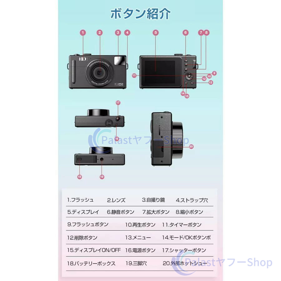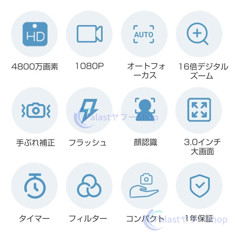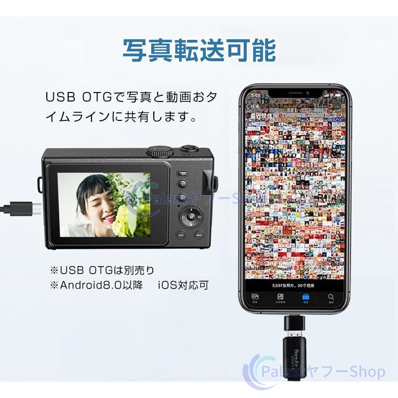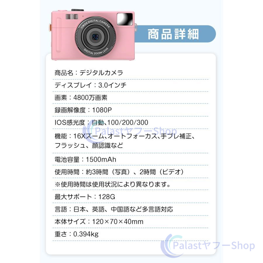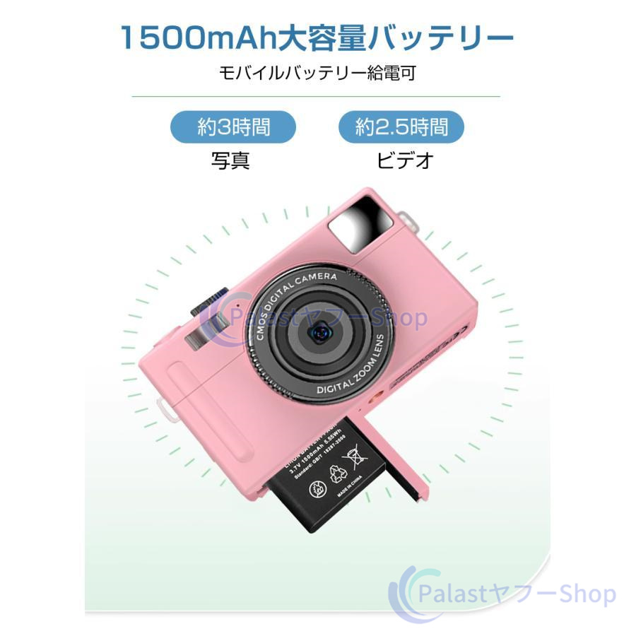【多機能なカメラ】連続撮影、笑顔キャッチャー、セルフタイマー、顔認証、メイク、ウェブカメラ機能が搭載されて、速やかに被写体を撮れます。内蔵フィルターの切り替えが簡単です。お花見、ハイキング、運動会、入学式、卒業式、旅行など色んな場合に利用できます。【デジカメ入門機】エントリーレベルのミニカメラで、操作が簡単で、キッズでも気軽によい作品が撮れます。初心者,学生,家庭での使用に適しており、軽量タイプなので、お年寄りへのギフトとしても最適です。最大128GBの外部micro SDXCカードがサポートします(Micro SDカードは別売りです)。ご注意:メモリカードはご使用する前に初期化の必要があります。