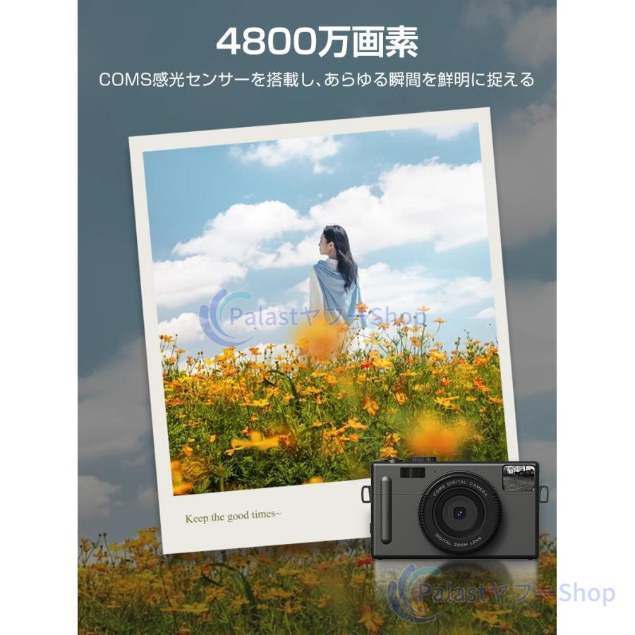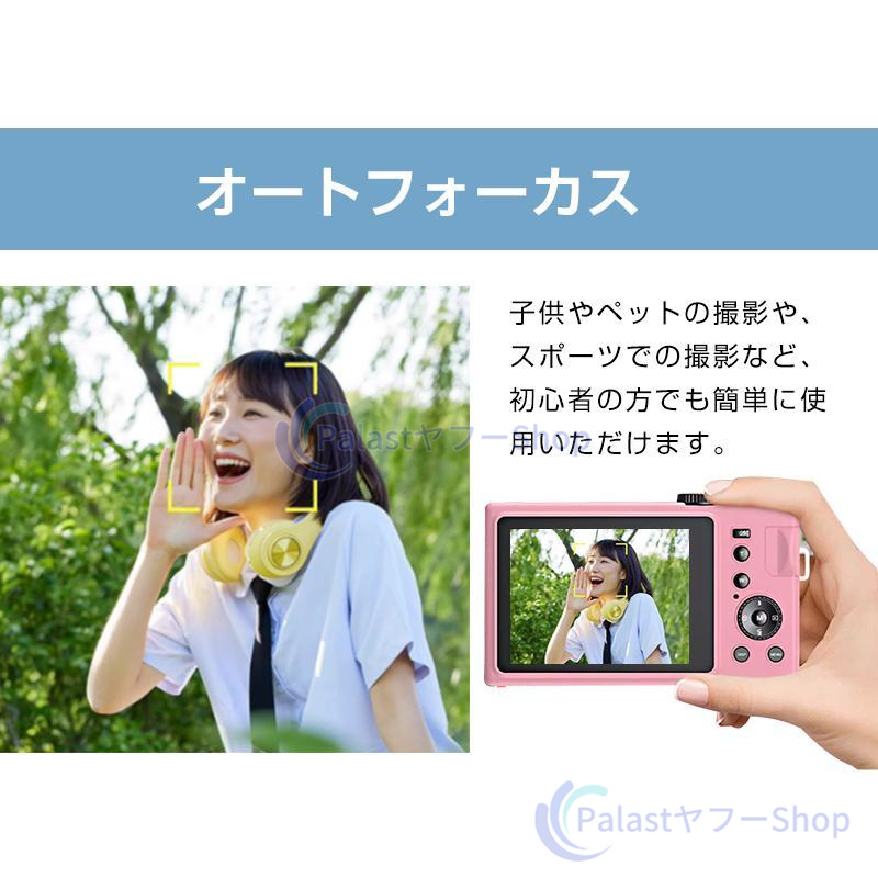 【オートフォーカスデジタルカメラ】最新のオートフォーカスデジタルカメラが登場!従来品と違い、4800万の高画素を搭載し、4Kの動画解像度を実現します。「AF機能:シャッターボタンをタッチしてピントが自動的に合わます。フォーカスフレームは黄色から緑色に変わってそのまま押して撮影できます」。操作性は簡単ですから、デジカメの入門機として初心者や学生にも簡単に綺麗な写真を撮れます。